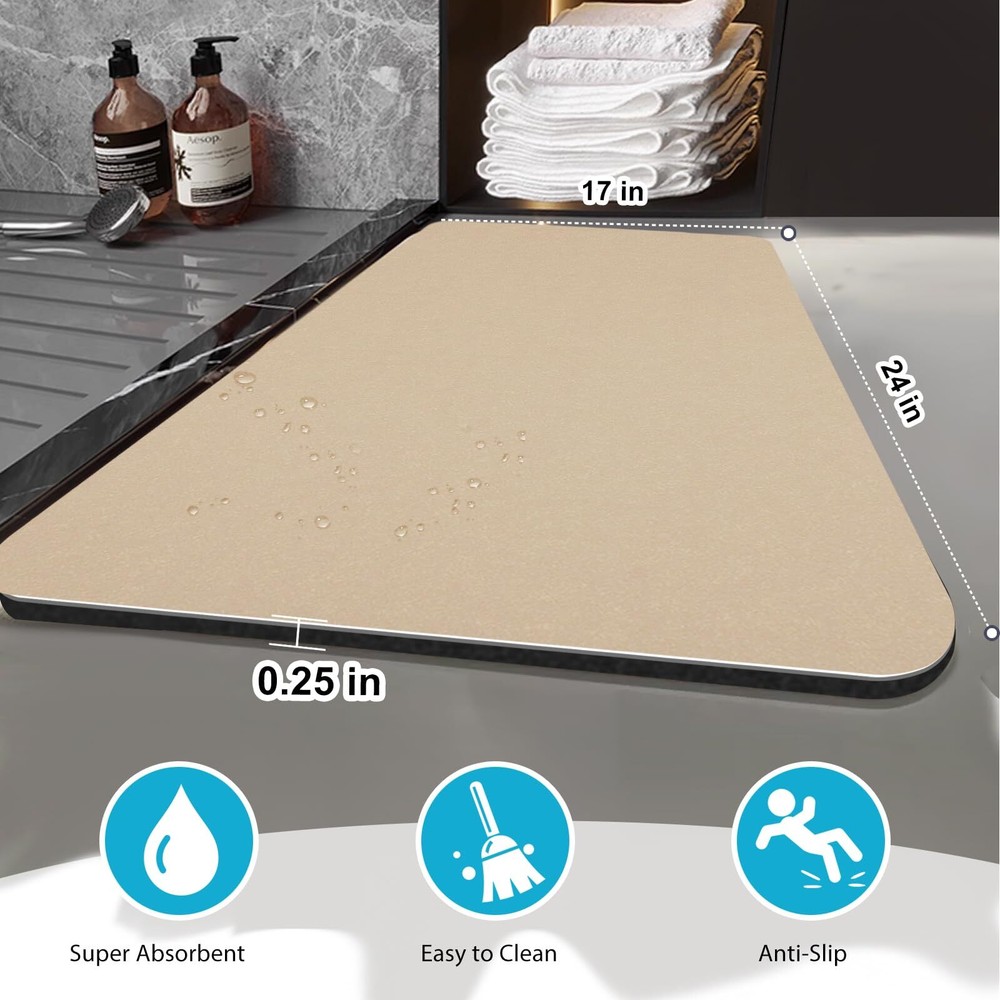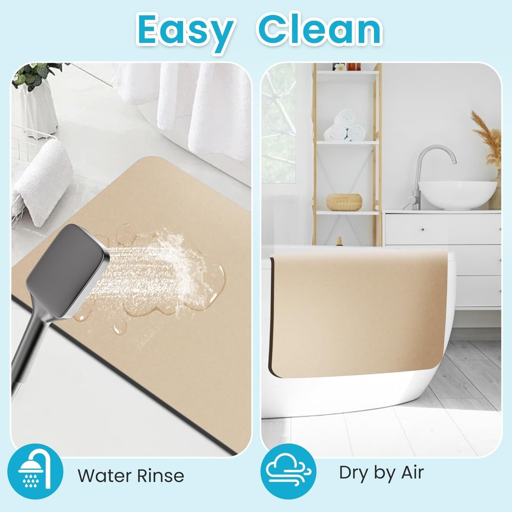 Bath Mat Bathroom Mat Non Slip Bath Mat Quick Dry Super Absorbent Bathmat Bath Rug Bathroom Rug Easy to Clean Rectangle 24"x17" Khaki 【Absorbent & Quick Drying】:The bath mat for bathroom is made of diatomite materials,which is easier to dry than normal plush mat. They can absorb as much water as possible from your wet feet immediately when you come out from bathtub or shower. This super absorbent bath mat will keep your space clean and safe. If you want to dry it quickly, just hang to air dry for one night. 【SOFT & COMFORTABLE】:The diatomite shower mat for bathroom contains a cushioning sponge layer for added comfort.,When you get out of the bathtub or shower, your feet will feel very soft on the surface. You won't feel cold or hard anytime. Enjoy a dry and comfortable experience after your shower. 【NON-SLIP BACKING Design】:The bathroom mat is designed with a rubber backing, it have a strong adsorption to the ground preventing slips and skids on wet surfaces. You can step out of the shower or bathtub with confidence 【Wide Use & Warmer】: This thin bathroom mat is suitable for wherever is easy to get wet, such as shower or bathtubs.Used for door mat, laundry room mat, kitchen mat, pet feeding mat, plant placement mat, desk mat, sink mat, living room mat,RV mat etc, You won’t feel cold in winter and won’t feel hot in summer when step on it. It's more than a mat for bathroom. 【Easy Clean & Durability】:The washable bathroom mat’s surface is designed to be smooth,unlike the plush bathmat. Never worry about cleaning hair and dust anymore.Just clean it with a damp cloth or rinse with a shower nozzle,even without the need of machine & hand washing. The rubber bath rug for bath room is used longger without problems caused by fibers, like fading, shedding, wearing. 【Best After-sales Service】: If you have any problem, please contact on us straightly. We will give you a satisfactory answer. SHIPPING Domestic Buyers - We have confidence in our products, but if you are not fully satisfied please contact us within 30 days of purchase and you will get full refund. - We ship within 3 business days of payment, usually sooner - We offer FREE shipping on all orders! - We only ship to the lower 48 states, no APO/FPO addresses or PO Boxes allowed International buyers – please note: Import duties, taxes, and charges aren't included in the item price or postage cost. These charges are the buyer's responsibility. - Please check with your country's customs office to determine what these additional costs will be prior to bidding or buying. * Order Cancellation Policy ** You can return a product for up to 30 days from the date you purchased it. 1. The seller reserves the right to cancel the special case only due to eBay cancellation fee. 2. The decision of seller is the final. 3. The seller will respond to the cancellation request within 2 business days. Please wait for the result of cancellation. 4. In case the cancellation is not completed by some reasons, the buyer can follow the options below to get the refund. 4.1 The buyer can reject the item when it arrives. 4.2 The buyer can send the item back to the seller within 30 days If the buyer receives item (USA Shipment ONLY). The seller will provide the FREE return label to the buyer when the buyer opens " Return Item" case on eBay by using the reason as "Change my mind" ONLY. 5. When buyer has placed the order. The order will be processed and completed by automatic warehouse system within 5 minutes. In case that buyer sends the cancellation request after 5 minutes of placing the order, the request will be rejected. **Sending direct message to cancel the order is not allowed for every case.* Return Policy For the return case - If buyer would like to return the items for refund or replacement, please CONTACT SELLER to receive the free return label from seller. The refund or replacement will be processed with the tracking number of return label which is provided by seller only. The other ways of return which are not approved by seller will not be processed for the refund or replacement.