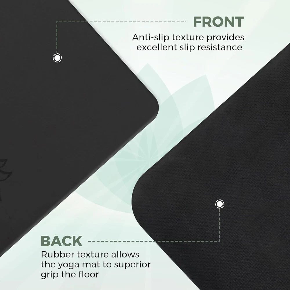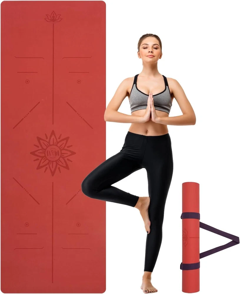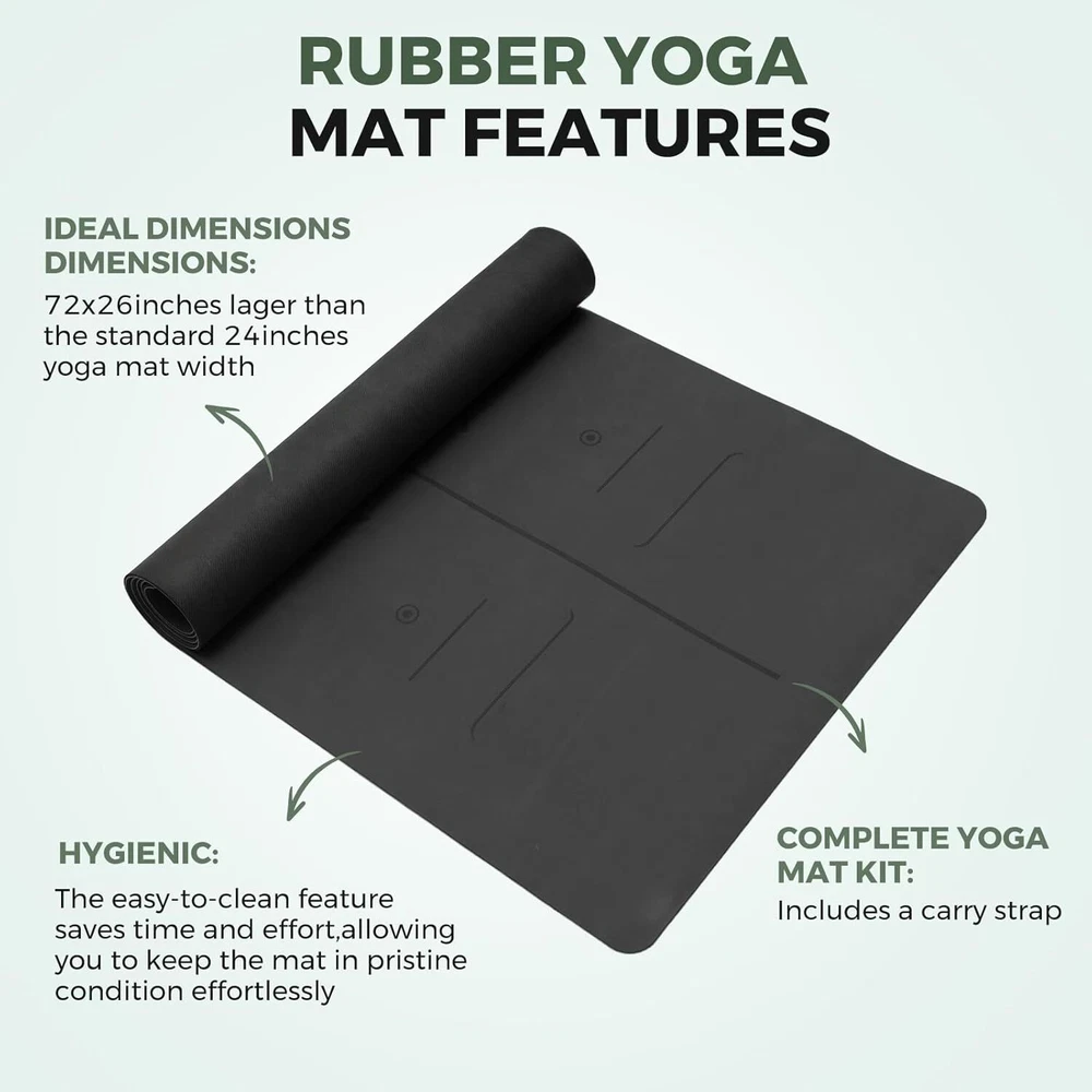 【Non-Slip Yoga Mats】Yoga Mats provide excellent grip and stability. Non-slip material keeps you steady and balanced while staying securely on the floor, they feature a non-slip coating for a stronger grip in all yoga poses 【Sweat-absorbent PU Surface】This non-slip yoga mat is made of natural rubber as the base layer, the surface layer is luxurious soft polyurethane (PU), when sweating, the PU layer can prevent slippage by absorbing sweat, the more sweat, the better the grip 【Firm Cushioning】Our padded yoga mat has a firm cushion support to help your muscles and joints feel more comfortable during intense poses whether standing or stretching on the floor 【Yoga Mats with Strap】Size: 72"x26" x1/6" Weight: 6.6lbs The yoga mat is portable with the included carrying strap, providing you an easy way to carry your mat to the gym or yoga studio 【Care instructions】Please recommend cleaning once before the first use,The non slip yoga mat can be kept hygienic by simply wiping it with a damp cloth or washing it with mild soapy water,and lay flat to dry. Do not use a washing machine or dryer or exposed to the sun for extended periods of time