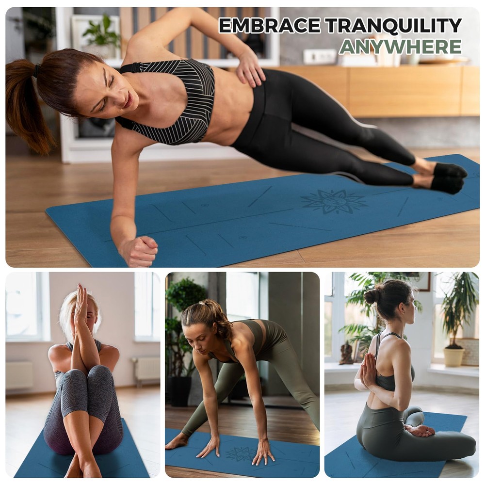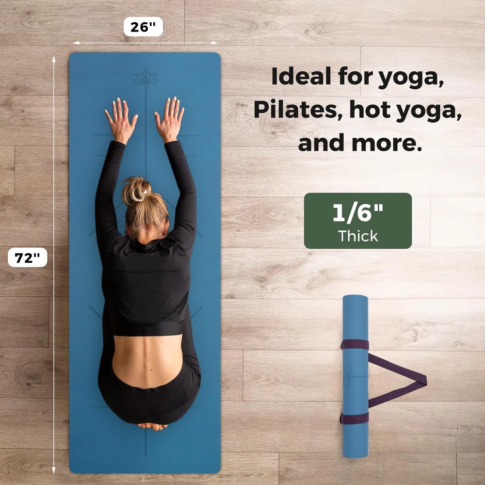 【Non-Slip Yoga Mats】Yoga Mats provide excellent grip and stability. Non-slip material keeps you steady and balanced while staying securely on the floor, they feature a non-slip coating for a stronger grip in all yoga poses 【Sweat-absorbent PU Surface】This non-slip yoga mat is made of natural rubber as the base layer, the surface layer is luxurious soft polyurethane (PU), when sweating, the PU layer can prevent slippage by absorbing sweat, the more sweat, the better the grip 【Firm Cushioning】Our padded yoga mat has a firm cushion support to help your muscles and joints feel more comfortable during intense poses whether standing or stretching on the floor 【Yoga Mats with Strap】Size: 72"x26" x1/6" Weight: 6.6lbs The yoga mat is portable with the included carrying strap, providing you an easy way to carry your mat to the gym or yoga studio 【Care instructions】Clean partially with a damp cloth, cold water, and mild detergent, and lay flat to dry. Do not use a washing machine or dryer or exposed to the sun for extended periods of time
