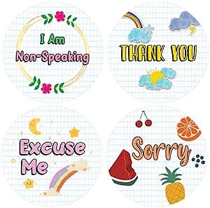 16 UNIQUE DESIGNS INSPIRING STICKERS FOR YOUR DIY PERSONALIZED DECORATIONS - Creanoso Non Speaking Communication Stickers (5-Sheets). These colorful and uniquely inspiring round shaped stickers are the best tool for DIY decoration and personalization of your belongings. GREAT STOCKING STUFFERS , TEACHING SUPPLEMENTARY MATERIALS, AND GIVEAWAY - Great stocking stuffers gifts for Boys, Girls, Teens, Kids. A perfect design to give during classroom school activities, home schooling,birthdays, anniversaries, family day, and any other special occasions. MADE WITH DURABLE AND WATERPROOF MATERIALS - There is a lamination or coating to make the stickers high water resistant, and WILL NOT fade from the water. The stickers can stick it anywhere you like, and it sticks there and lasts a long time. A COLORFUL AND DECOR STICKER DECAL - Each sheet with 16 individual round stickers. There are 5 sheets , with a total of 80 pcs of stickers. STICKER SIZE: 1.5 INCHES IN DIAMETER Non Speaking Communication Stickers (5 Sets X 16 Designs) COLORFUL AND COLLECTION OF TEXT STICKERS • Well designed. • Very encouraging. • Self-adhesive. Non Speaking Communication Stickers (5 Sets X 16 Designs) are super fun to collect; you can't have just one! That's why you will find a selection of stickers right here. Each package comes with different stickers in a variety of designs. Stick them here, stick them there, stick them everywhere! Everyone will love these self-adhesive stickers. These colorful stickers are perfect for any adults and these come with very inspiring messages and bright pictures. A fun, inexpensive way to add a decorative, notes, and stationery. Delight yourself with uplifting messages designs that are very encouraging. Non Speaking Communication Stickers (5 Sets X 16 Designs) perfect for giveaways, behavior incentives, prizes! These stickers are acid-free, nontoxic, and safe for use on photos. This product comes with a 60 days money back guarantee. You can return them to us for a full refund.