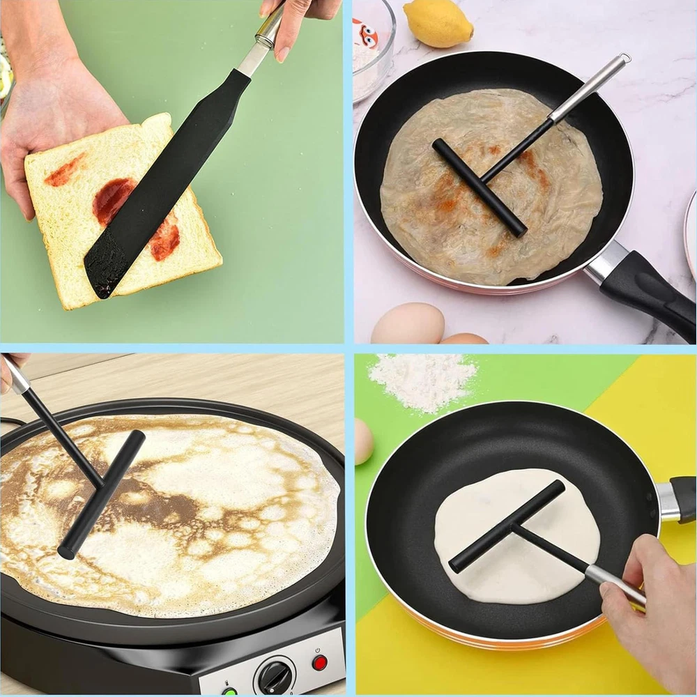 1. This crepe spreader and spatula kit is a game-changer for making perfect pancakes and crepes! The comfortable grip makes it easy to use without fatigue, and the long-handled spatula keeps your hands safe from heat. The spreader distributes batter evenly for flawless, thin crepes every time. The non-stick surface ensures effortless flipping and cleanup. A must-have for any breakfast lover!