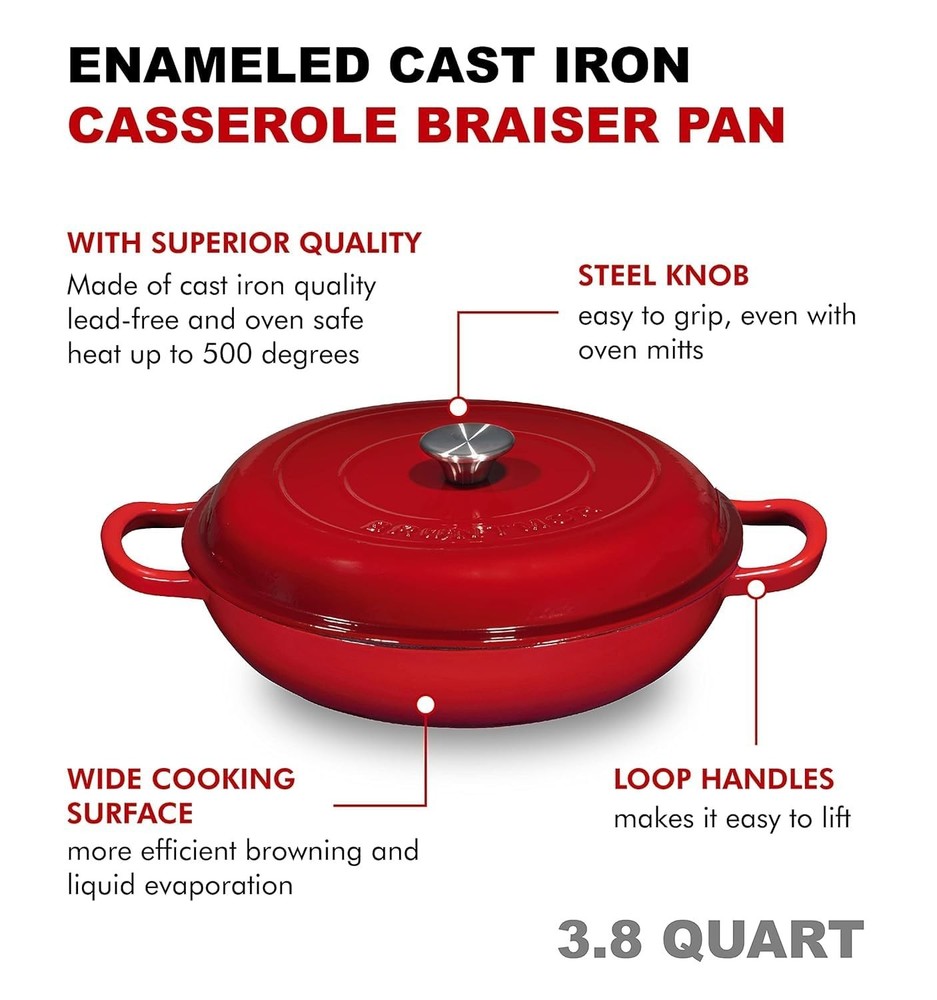 $ 36.946 QT Enameled Cast Iron Dutch Oven with Dual Handles & Lid
