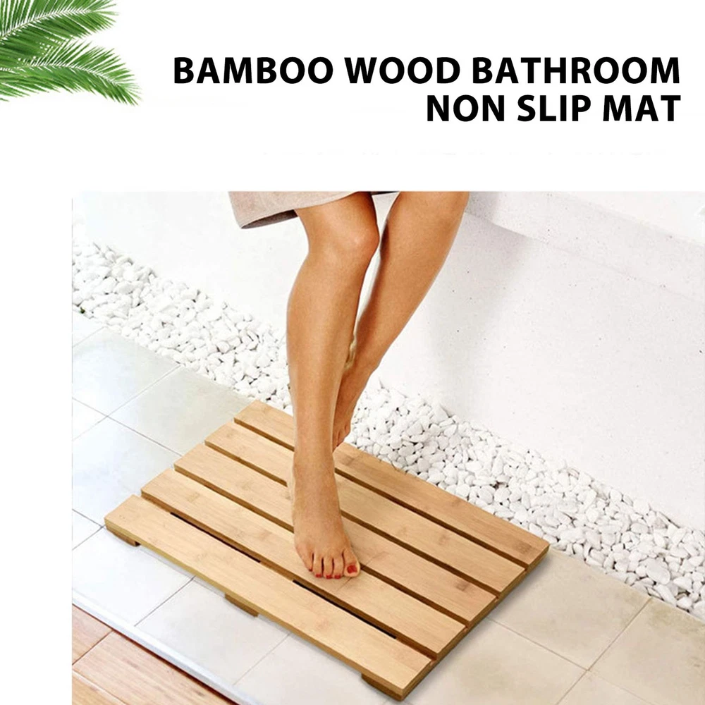 Non-slip Bamboo Bath Mats for Bathroom Floors Soft & Absorbent