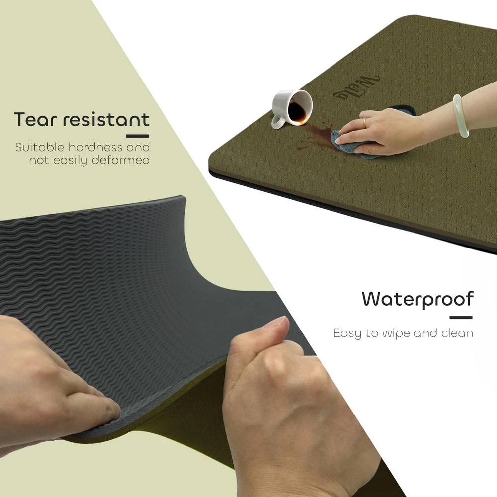 Welia 6mm TPE Yoga Mat with Dual-Sided Non-Slip Textures – Superior Comfort & Responsive Cushioning for All-Level Yogis. Ideal for Yoga, Pilates, Strength Training, and Camping. The snake-patterned front grips sweaty palms in hot yoga, while the wave-textured back stabilizes strength training. Eco-Friendly, SGS-Certified SGS certified odourless TPE, Lightweight with Easy-Clean Surface. 24'' Wide Anti-Tear Design for Women, Seniors, and Beginners. 3 Dual-Color Options (Orange/Black, Green/Black, Purple/Black). Eco-Friendly & Low Odor, SGS Certified:Made with glue-free TPE technology, ensuring minimal chemical smell and safe use for sensitive users. Non-absorbent surface resists sweat and dirt – simply wipe clean with a damp cloth for instant drying. Premium TPE Material with Dual-Sided Textures: Features snake patterns on the front and wave textures on the back for 360° non-slip grip during yoga, Pilates, or high-intensity workouts. The 6mm thickness provides cushioning for joints while maintaining stability. Superior Comfort & Adaptive Resilience for All Levels: 6mm yoga mat delivers responsive cushioning that supports joints during gentle stretches or intense flows. The balanced rebound adapts to beginners mastering poses, advanced yogis holding balances, and seniors seeking gentle workouts. Anti-Tear & Multi-Functional: Reinforced anti-tear structure withstands intense strength training, pilates, editation, or daily home workouts. Lightweight yet durable for portability between studios, gyms, and outdoor camping adventures. Free yoga mat with strap,convenient for on-the-go and storage. Stylish Dual-Color Reversible Design: Choose from 3 bold color combos (Orange/Black, Green/Black, Purple/Black) to match your style. Flip the mat to switch between vibrant hues or subtle tones for varied workout vibes.