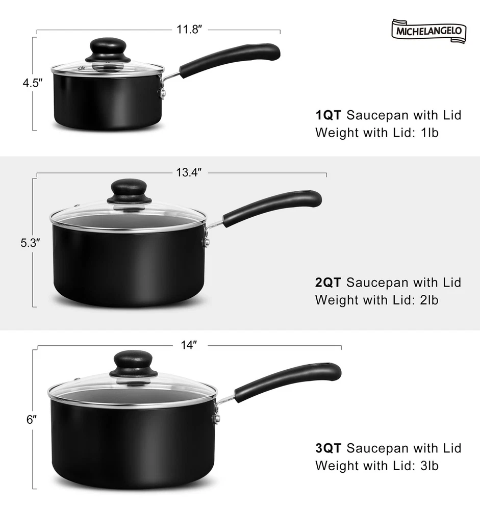 [Super Easy to Clean] - This excellent non-stick small sauce pan simplifies your cleaning process with its superior non-stick performance. Just a quick rinse with soapy water after use, and this 1 quart saucepan with lid looks like new. [SUPERIOR NON-STICK PERFORMANCE] - The saucepan is equipped with a healthy, non-toxic ceramic coating free from APEO and PFOA. Enjoy the wonderful cooking experience with our small sauce pan with lid. [Perfect Size] - Our 1 qt saucepan with lid is ideal for small everyday cooking tasks. Whether you’re making a quick bowl of oatmeal, soup, or preparing sauces, gravies and veggies, this 1 quart saucepan is the perfect size for smaller portions. [FAST & EVEN HEATING] - Our non stick pots have durable aluminum alloy bases that greatly enhance heating performance. Compatible with all stovetops and dishwasher-safe, the small cooking pot combines efficiency with convenience. [Ergonomic Lid & Handle] The sauce pan is crafted with a vented heat-resistant glass lid for real-time visibility. This ceramic saucepan features an extended cool-touch handle that prevents burns during prolonged use. Its double-riveted construction ensures industrial-grade durability and a secure, comfortable grip.