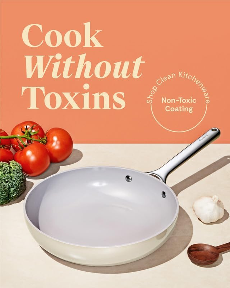 CARAWAY NOW LIVE ON AMAZON: Caraway has officially launched their best-selling and consciously crafted cookware on Amazon for everyone to enjoy. Time to upgrade your pots and pans and spruce up your kitchen decor! 10.5” FRYING PAN: Perfect for slide-off-the-pan eggs, sauteing veggies, flipping pancakes and more. This durable non-stick pan makes cooking easier than ever, cleaning (dare we say) enjoyable, and adds a pop of color to any home. NATURALLY NON-STICK: Our naturally slick non-stick pots and pans require less oil or butter for cooking and minimal scrubbing for a spotless clean, giving you a healthier and more enjoyable at-home cooking experience. NON-TOXIC COATING: All Caraway pot and pan products are free of PTFE, PFOA, PFAS, lead, cadmium and other toxic materials that can leach into your food, making them safe for you, your family and the environment. SIMPLE CARE: Our cookware ais made for any kitchen and cooktop. Use them on low to medium heat and add a dash of oil or butter for an effortless glide. Our cookware is also oven-safe up to 550ºF. Product Description Discover Caraway's Ceramic Cookware Pieces Customer Reviews 4.3 out of 5 stars 3,640 4.2 out of 5 stars 4,323 4.5 out of 5 stars 1,541 4.7 out of 5 stars 1,380 4.7 out of 5 stars 762 Price $445.00 $ 445 . 00 $115.00 $ 115 . 00 $165.00 $ 165 . 00 $120.00 $ 120 . 00 $145.00 $ 145 . 00 Materials Ceramic Coated Ceramic Coated Ceramic Coated Ceramic Coated Ceramic Coated Dimensions 4-Piece Set With Storage 8.0 or 10.5 in (two sizes) 12.0 in | 4.5 qt 1.75 or 3.0 qt (two sizes) 10.5 in | 6.5 qt Non-Stick ✔ ✔ ✔ ✔ ✔ Non-Toxic ✔ ✔ ✔ ✔ ✔ Easy Cleaning ✔ ✔ ✔ ✔ ✔