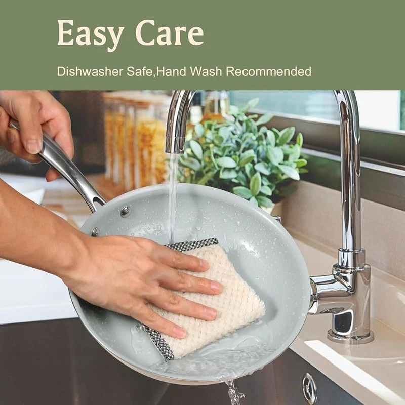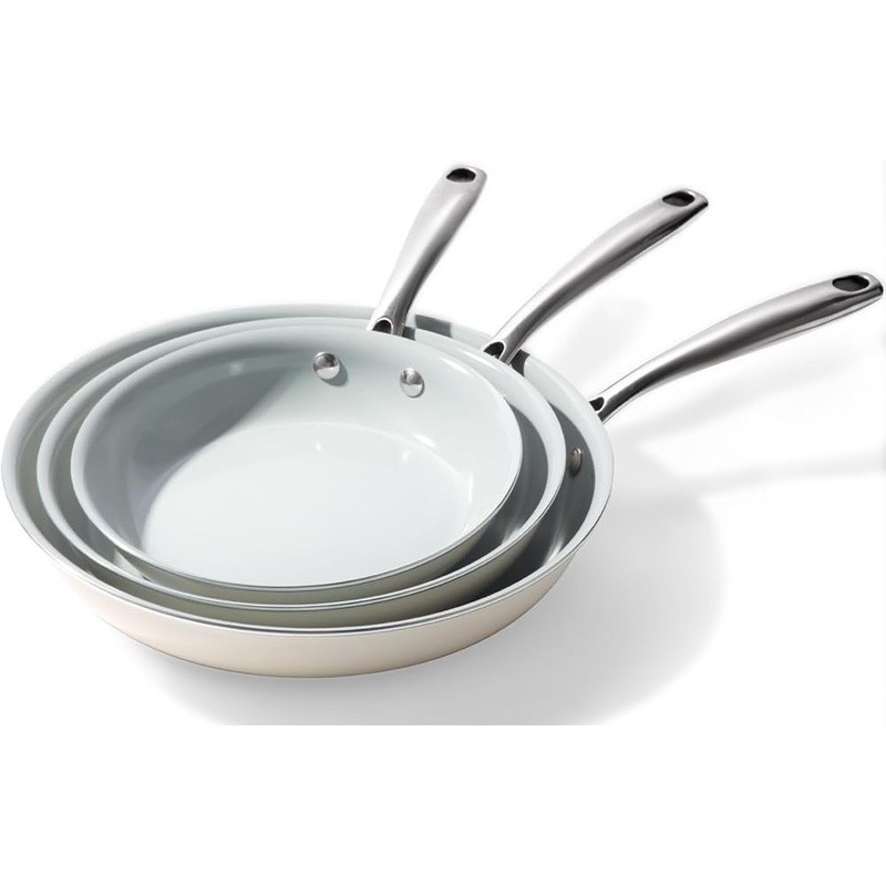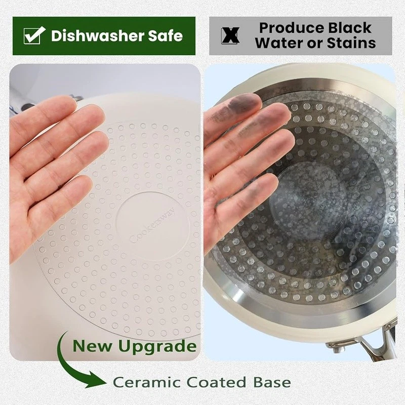 About this item Exceptional Nonstick Surface: Our nonstick frying pans feature a premium ceramic coating that allows for effortless food release. Enjoy cooking your favorite meals without worrying about sticking, making cleanup a breeze. Durable and Eco-Friendly Material: Crafted from high-quality ceramic, this ceramic cookware set is free from harmful chemicals such as PFOA and PTFE. Cook with confidence knowing that you’re using a safe and environmentally friendly option for your family. Dishwasher Safe & Oven Safe: Designed for convenience, these frying pans nonstick are both dishwasher safe and oven safe up to 550°F. This means you can easily clean them in the dishwasher and use them for baking or roasting in the oven, providing versatility in your cooking routine. Versatile Cooking Options: Whether you’re preparing breakfast eggs, sautéing vegetables, or searing meats, our skillet is perfect for all types of cooking. Its versatility makes it a valuable addition to your pan set, suitable for any meal of the day. Even Heat Distribution: The design of our ceramic pan ensures even heat distribution, preventing hot spots and ensuring perfectly cooked meals every time. This feature is essential for achieving consistent results in your culinary creations. Brand: Material: Aluminum Pan, Ceramic Coating, Stainless Steel Handle Special Feature: Dishwasher Safe, Induction Stovetop Compatible, Lightweight, Non Stick, Oven Safe Color: Beige Capacity: 7. 5 Liters