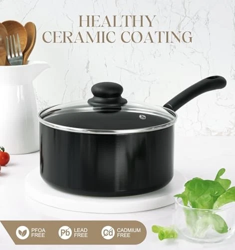 Nonstick Ceramic Saucepan Set with Lid and Steamer in 1QT 2QT 3QT Sizes Easy to Clean