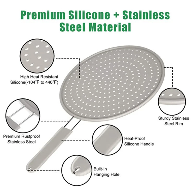 Product features: Is made of premium silicone, which is non-toxic and odorless, safe and healthy to use. Can be cleaned quickly or wiped with a damp cloth, which is easy to clean. Can be used as a filter, cooling pad, or as a drainage board. And it Can be treated as too for preventing a grease splash, which can prevent 99% of grease splashes. And it can be used as a strainer to filter liquid from a cooking pot or any food preparation container. Features the universal size, which is suitable for small and large pans. Parameter: Name: silicone splatter Size: As the pictures shown Material: Silicone + stainless steel Colour: grey Package includes: Silicone Splatter*1 Note: Please allow minor error due to manual measurement. The colors may be a little difference for the different monitor display.