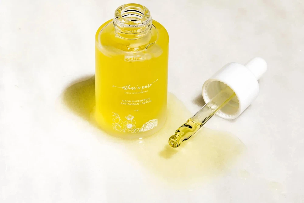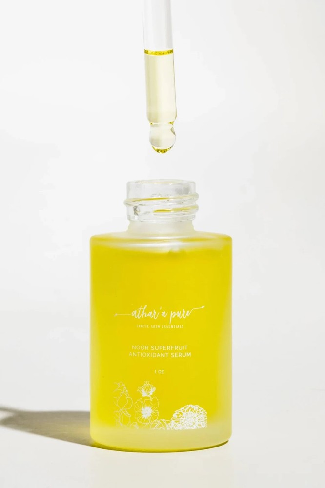 Our Noor Superfruit Antioxidant Facial Serum is Formulated to Provide Potent, Ayurvedic Skin Healing Nutrients and Antioxidants That Will Brighten Up a Dull Complexion, Fight Aging, Firm Skin, Reduce Fine Lines and Wrinkles and Revive Skin to Appear Healthier, Radiant and More Youthful! As We Age, Our Skin Looses Elasticity, Collagen and Antioxidants, That’s Why Adding Antioxidants, Minerals and Vitamins Back Into Skin with Plant Based Superfoods Can Be So Beneficial! Noor Means GLOW! All our facial care products are made with love right here in the USA! Give Your Skin the Dewy, Hydrated Glow That You Deserve With This Plant Based, Super Fruit Antioxidant Facial Serum! Benefits Of the Noor Superfruit Antioxidant Facial Oil: This Superfood and Plant Based Antioxidant Facial Oil is Loaded With Potent Nutrients that G o Deep into the Layers of Skin and Help Protect Against Environmental and UV Damage, Oxidative Stress and Free Radicals that Cause Premature Aging and a Dull Complexion. Regenerates and Heals Skin by Promoting Cell Renewal, Improving Your Skin’s Elasticity and Diminishes the Appearance of Fine Lines and Wrinkles. Reduces Appearance of Sun Damage, Age Spots, Pigmentation, Scars and Promotes Reversal of Skin Damage Leaves Skin Soft, Hydrated, Radiant and Healthier Looking Anti-inflammatory and High Levels of Antioxidant found in Turmeric Help Revive Skin and Bring out a Healthy Glow. High Amount of Polyunsaturated Fatty Acids and Natural Antioxidants from Raspberries, Pumpkin and Pomegranate Help Maintain Normal Cell Structure and Retain Moisture, Which Keeps Skin Youthful and Hydrated. High Amounts of Zinc and Vitamin E also Improve Skin Tone and Help with Skin Renewal. High levels of Phytosterols that Can Help Reduce Trans-epidermal Water Loss, Thereby Increasing Hydration and Moisture in Skin Essential Oils of Geranium, Blue Tansy and Neroli Not Only Provide Calming, Aromatherapy, They Also Help Regenerate and Firm Skin and Diminish Signs of Aging Recommended For: Normal, Dry, Mature and Aging Skin Ingredients: Organic Camellia Seed Oil, Organic Pumpkin Seed Oil, Organic Red Raspberry Seed Oil, Organic Pomegranate Seed Oil, Organic Avocado Oil, Meadowfoam Seed Oil, Organic Grapeseed Oil, Turmeric, Organic Jojoba Seed Oil, Neroli, Geranium, Blue Tansy Oil