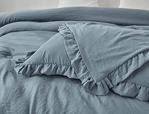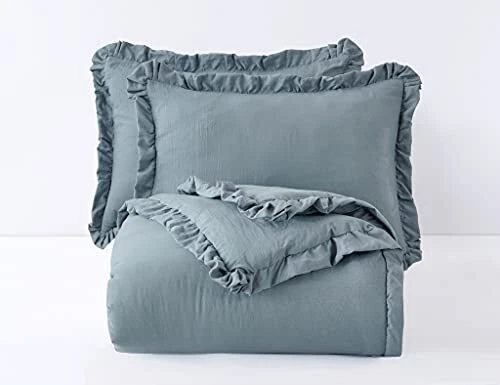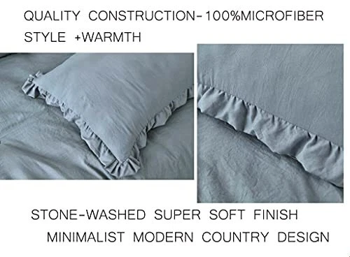 Return Policy Fast Delivery Trusted seller Nora 3-Piece Ruffled Edge Trim Soft Washed Microfiber Comforter Set (King, Dusty Blue) Product Description Nora 3-Piece Comforter Set Includes: 1 Comforter, 2 Shams King Size Measurements: Comforter 104" x 92", Shams 20" x 36" +2" Features a vintage ruffled edge trim pattern that exhibits an elegant look and feel. An attractive crinkled effect fabric formed by pre-wash which enhances the aesthetics of the comforter, ideal with an all season comforter weight for cozy comfort to any bedroom year round Easy Care - Machine washable in cold water, tumble dry low, do not bleach Made in OEKO-TEX Standard 100 factory, an independent certification system that stands for customer confidence by ensuring textiles are tested for harmful substances and meets high product safety and environmental standards. Shipping Returns Payment Shipping Shipping is FREE to all addresses other than APO/PO boxes in the lower 48 states. All our stock ships from US-based warehouses. Shipped via USPS or UPS (depending on location and package weight) Unless stated otherwise, all orders will ship within 24-72 hours of your payment being processed. Check our feedback to see the great reviews of FAST shipping we offer. Returns Seller does not accept returns Payment We currently accept payment via eBay managed payments only. Once payment is cleared, we will dispatch your shipment within 1-3 business days. Please refer to the "Shipping" tab for more information regarding shipping speed to your destination.