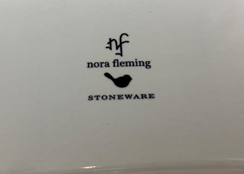 Like new- never used not in new box - The Nora Fleming Stoneware Pearl Dot Chip and Dip Oval Serving Bowl is a stylish and practical addition to any kitchen or dining room. The white stoneware bowl features a charming pearl dot pattern, perfect for serving chips and dips. The oval shape adds a touch of elegance, while the inclusion of a box makes it easy to store and transport. This versatile piece is ideal for entertaining guests or everyday use in your home.