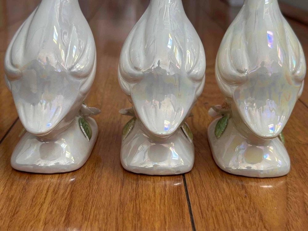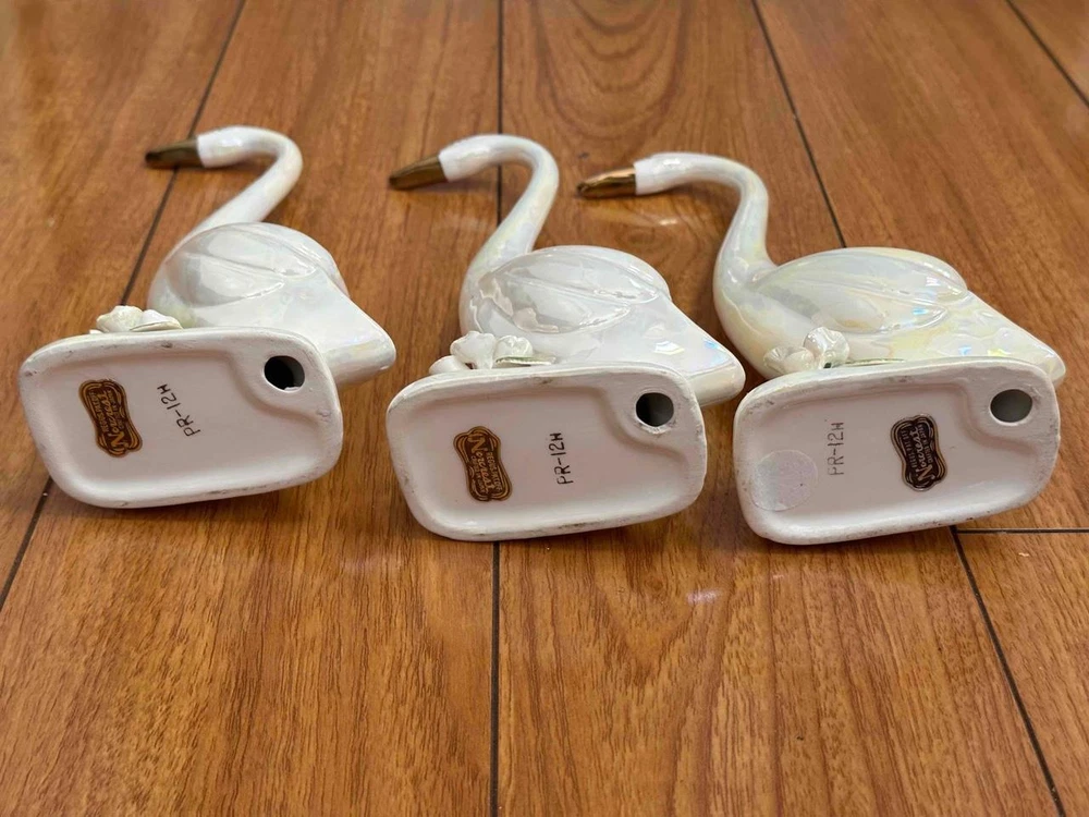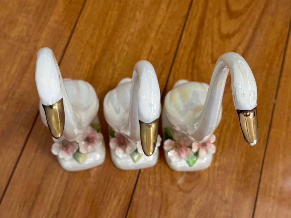 Norcrest Swan Porcelain Figurines Iridescent Pink Flower ~ Vintage SET OF 3 Norcrest Swan Porcelain Figurines Iridescent Pink Flower ~ Vintage SET OF 3 Click images to enlarge Description ***PLEASE VIEW ALL 18 PHOTOS AS THEY SERVE A S A PARTIAL TO THE LISTING DESCRIPTION AND ASK QUESTIONS IF NEEDED**** VINTAGE NORCREST SWAN PROCELIAN FIGURINES ~ IRIDESCENT WITH LOVELY PINK FLOWERS ~ SET OF 3 EXCELLENT GENTLY USED CONDITION ~ NO DAMAGE ~ HAS SMALL GOLD RUB ON ONE OF THE SWANS ~ AS SEEN IN PICS FOR VIEWING ITEM CONDITION, THANKS FOR LOOKING :) Payment PAYMENT IS DUE WITHIN 3 DAY'S FROM DATE OF SALE OR TRANSACTION WILL BE CANCELED AND THE ITEM WILL BE RE-LISTED Shipping ITEMS IN MOST CASES ARE SHIPPED THE DAY PAYMENT IS RECIEVED UNLESS THE SALE IS COMPLETED AON A WEEKEND OR HOLIDAY I NO LONGER SHIP INTERNATIONAL DUE TO E-BAYS RESTRICTIVE POLICIES Terms of Sale BECAUSE MOST OF MY ITEMS ARE LISTED AS EITHER VINTAGE OR ANTIQUE THEY ARE BEING SOLD AS SUCH, AND BY NO MEANS ARE NO BEING REPRESENTED AS PERFECT UNLESS OTHERWISE NOTED OR REPRESENTED AS SUCH. MANY OF THE ITEMS MAY HAVE SCRATCHES OR NORMAL WEAR FROM USE AND SOME MAY INCLUDE AS MADE IMPERFECTIONS PLEASE VIEW ALL PHOTOS AS THEY ARE A REPRESENTATION OF THE STATE OF THE ITEM BE SURE OF WHAT YOU ARE PURCHASING BEFORE YOU BID About Us I HAVE BEEN SELLING ON E-BAY FOR OVER 14 YEARS AND MOST OF MY ITEMS THAT I SELL ARE FROM LOCAL ESTATE SALES OR GARAGE SALES, ND OR AUCTIONS. A LARGE PERCENTAGE OF THE ITEMS I LIST ARE BEING SOLD AS VINTAGE OR ANTIQUE UNLESS OTHERWISE STIPULATED AND I SINCERELY HOPE THAT YOU ENJOY THE VARIETY OF ITEMS THAT I LIST Get images that make Supersized seem small. Showcase your items with Auctiva's Listing Templates! THE simple solution for eBay sellers. Track Page Views With Auctiva's Counter
