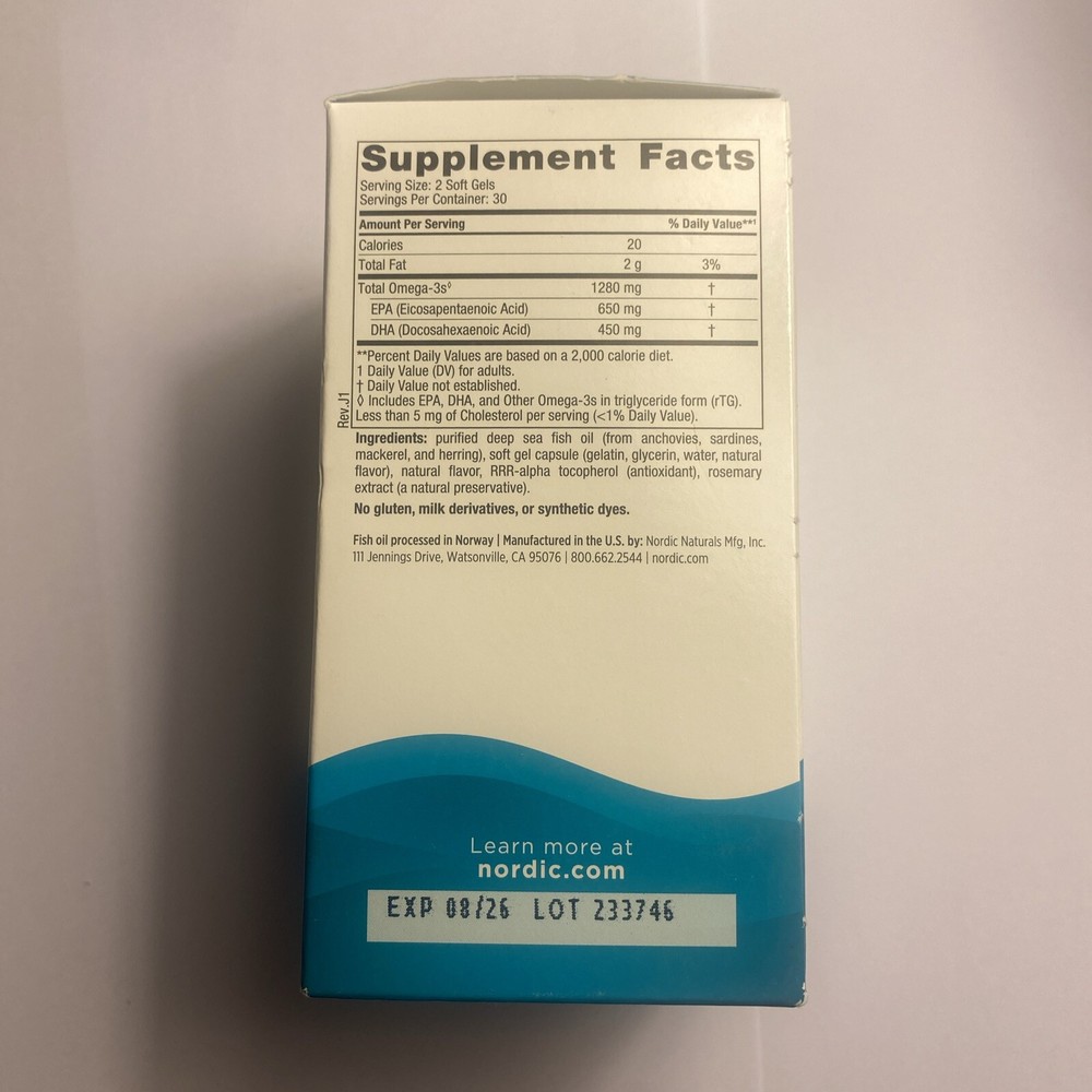 The Nordic Naturals Ultimate Omega Xtra softgels are specially formulated to support heart health, immune function, and brain and nervous system health. Each serving contains a potent blend of omega-3 fatty acids from fish oil, encapsulated in gelatin for easy absorption. With a delightful lemon flavor and a long expiration date of 10/2027, these dairy-free and gluten-free supplements are ideal for both men and women looking to maintain optimal health. Take 60 softgels after or before meals for a convenient and effective way to nourish your body with essential omega fatty acids.