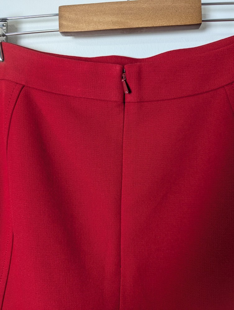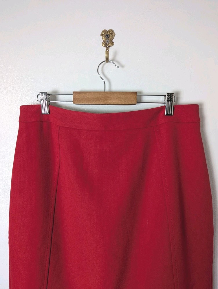 Nordstrom Halogen Pencil Skirt Red Size 10 Lined Stretch Business Career Back Zip Closure Back Slit 64% Polyester 33% Viscose 4% Spandex Lining 100% Polyester Measures approximately 32" waist (16" flat lay) and 24" length Good Condition - no rips, holes, tears, pulls
