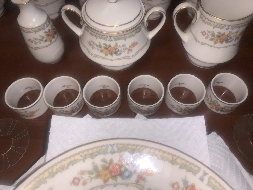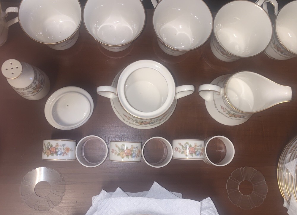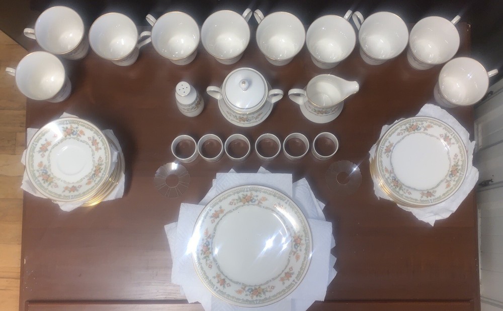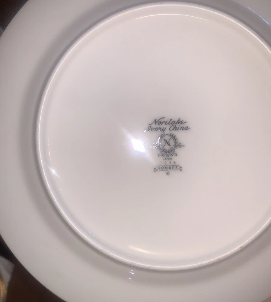 Condition is Near Mint / Excellent with minimal (if any) signs of wear consistent with age (1977 - 1985)! No chips, cracks, or repairs from Never Being Used! Previously for Display Purpose Only! Refer below for ALL Discontinued Homage by Noritake Pattern 7236 Pieces are included in offer (with Dimensions). See photos for more details. From a Pet / Smoke-FREE household. Made in Japan! Take $50 OFF with Local Pickup (N.C.)! Shipped FAST & FREE (in U.S.)! Included in Offer: • (10) Homage by Noritake 7236 Footed Tea Cups - 3 1/2"H • (10) Homage by Noritake 7236 Tea Cup Saucers - 6" Diam • (10) Homage by Noritake 7236 Salad Plate - 8 3/8"Diam • (10) Homage by Noritake 7236 Bread & Butter Plate -6 1/2" Diam • (6) Homage by Noritake 7236 Napkin Ring Set - 2"Diam • (2) Homage by Noritake 7236 Footed Sugar Bowl + Lid & Creamer Set (8 oz) - 4 1/2" / 4 1/8" • (1) Homage by Noritake 7236 Pepper Shaker w/ Stopper (5 Hole)