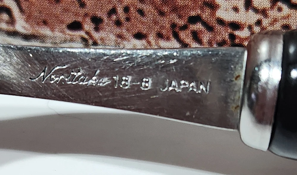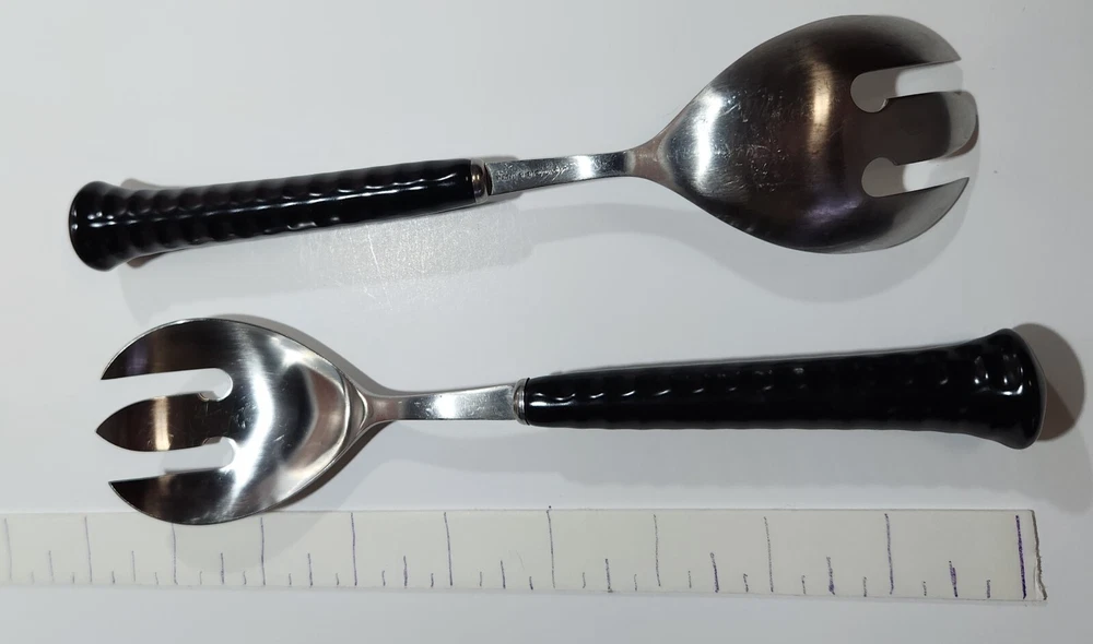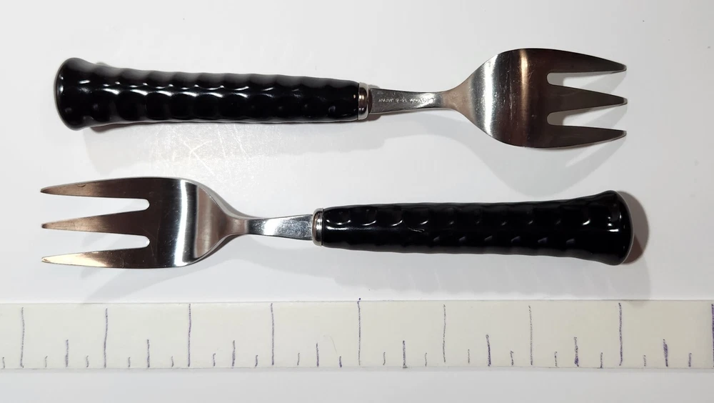 This MCM Noritake Primastone Decision Black 18-8 stainless flatware from Japan is a must-have for any collector or lover of unique flatware. The set features a sleek black color and ribbed handle that adds a touch of sophistication to any dining table. Made of durable stoneware and stainless steel, this vintage set is perfect for both everyday use and special occasions. With hand washing, this set will maintain its beauty for years to come. This flatware is perfect for those who love to mix and match their dinnerware and want a unique set that will impress their guests. Sold by the piece.