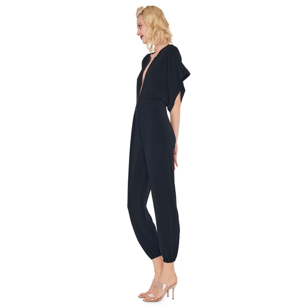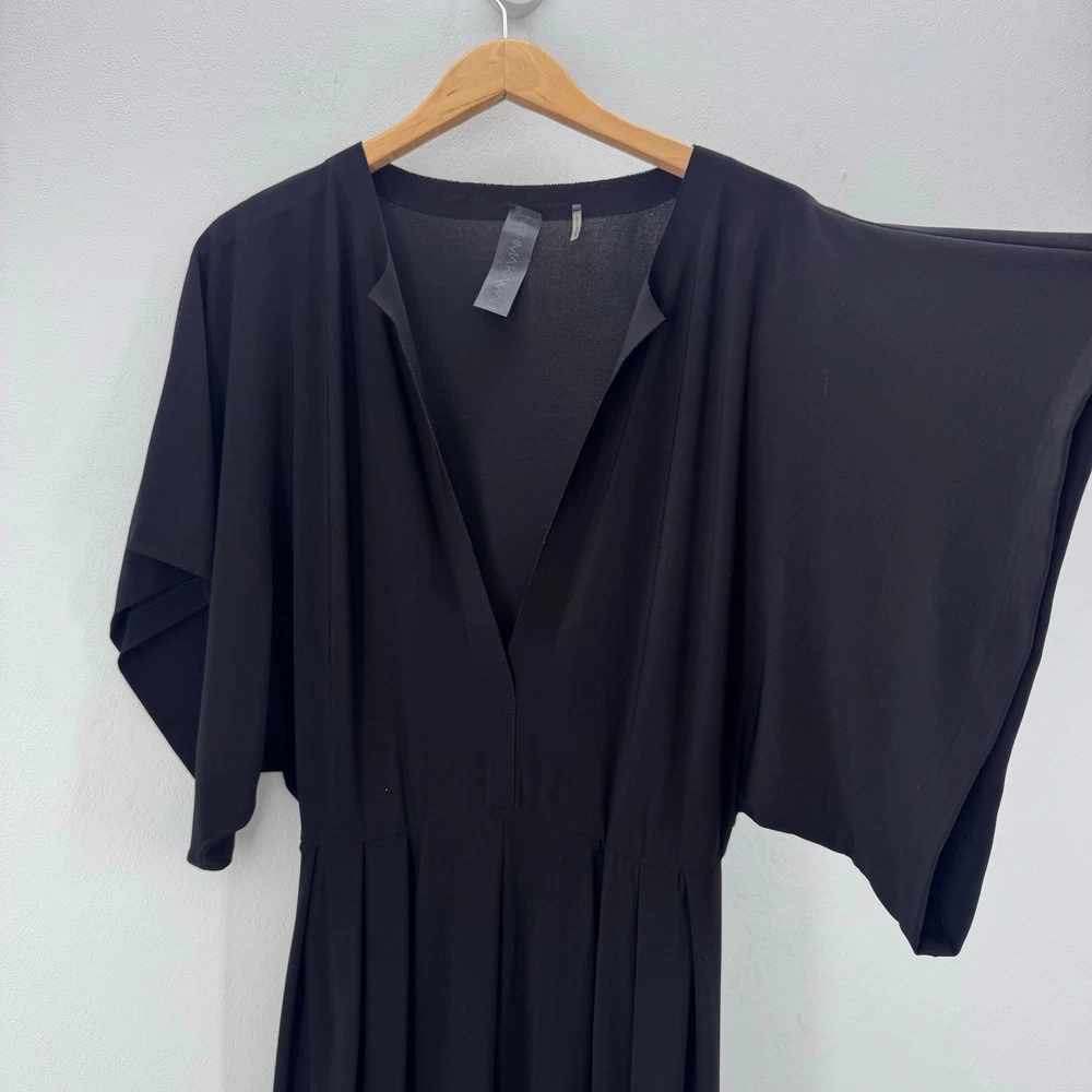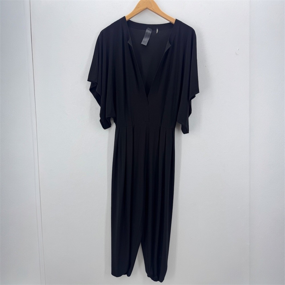 Norma Kamali Rectangle Plunging Kimono Sleeve Jogger Jumpsuit Black Size Small Pre-owned in great condition with normal signs of wash wear. No rips or tears. Deep V-neckline, short dolman sleeves, Elastic aistbnd and tapered jogger-style pant Please see photos for measurements and condition All flaws will be pointed out • Please compare the measurements to something you already own All Reasonable offers will be considered. All questions answered quickly. Refer to all pictures for measurements TAGS: Cozy , Loungewear , Goth , Whimsigoth