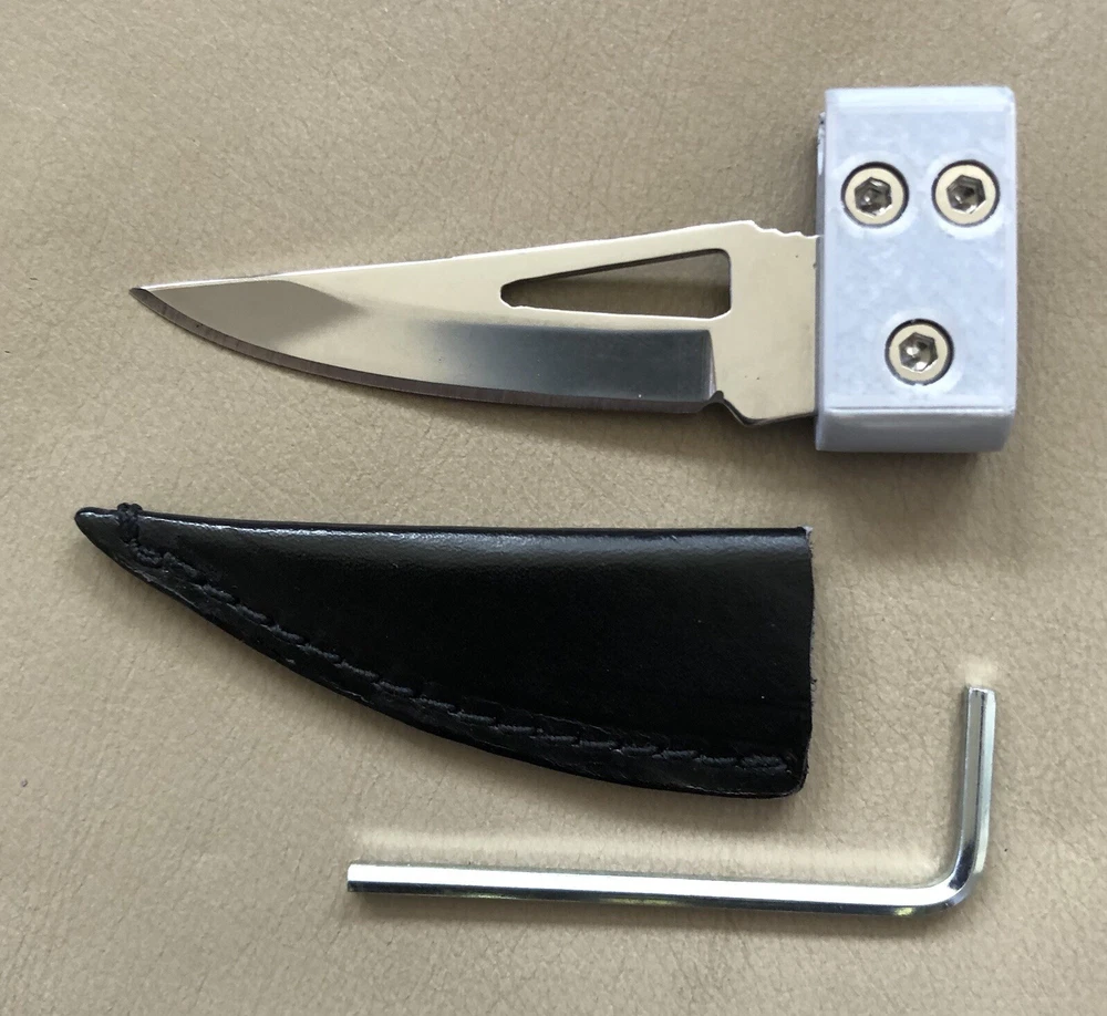 This Quality kit includes a highly engineered clamp, 2” (approximately) super sharp stainless steel blade, Hermann Oak Veg Tanned black leather sheath and a 2.5 mm Allen wrench. The bayonet kit will fit all standard minis (22 short, 22LR, 22 Mag) having a push button type cylinder rod. The clamp will not fit Wasp models due to the diameter of the rod assembly. The Bayonet makes a great addition to your NAA collection. Take a look at our listing for a hand cannon stand for your NAA. We have 3 styles, 22 LR frame stand, 22 Mag frame stand and 22 Mag frame stand with cylinder storage. We also make hand cannon display stands for Bond Arms, Cowboy 6 shot revolver, 1911s, Walther PPK and PPK/S, Kimber micro 380. See our other listings or feel free to contact us for more information. Thank you. Firearm is not included.