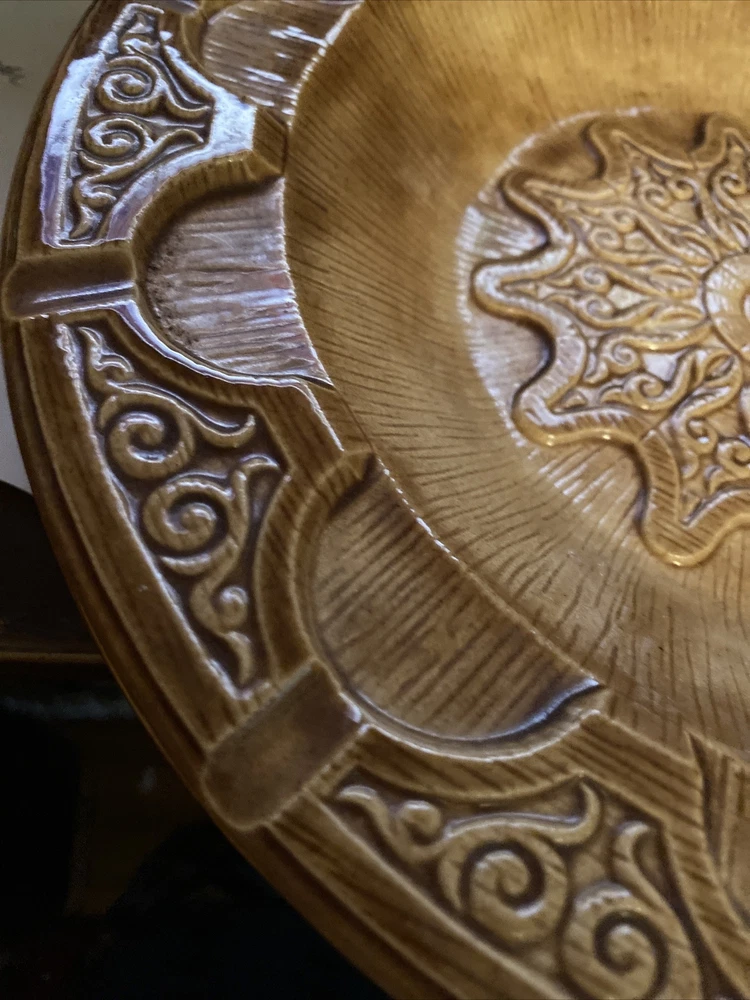This beautiful handmade ashtray from North Carolina Pottery is a must-have for any collector of fine art. The round brown clay piece measures 10.5 inches in diameter and has a glossy finish that adds to its decorative appeal. Suitable for cigarettes, it features an item height of 2 inches and has a weight of 3 pounds. Created in 1999, this original piece is part of the Regency style and has a production style of art pottery. It has been crafted using traditional pottery techniques by skilled artisans in the United States. With its unique features and exquisite design, this ashtray is a true work of art that will adorn any space.