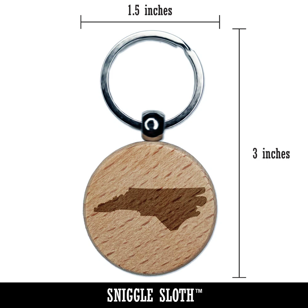 North Carolina State Silhouette Engraved Wood Round Keychain Tag Charm