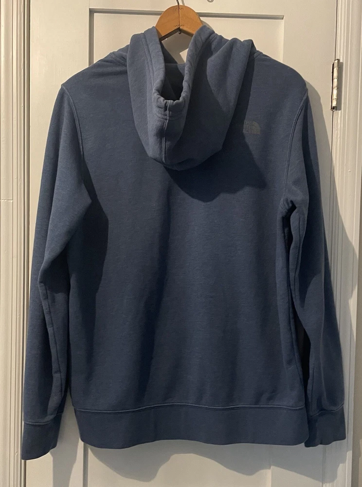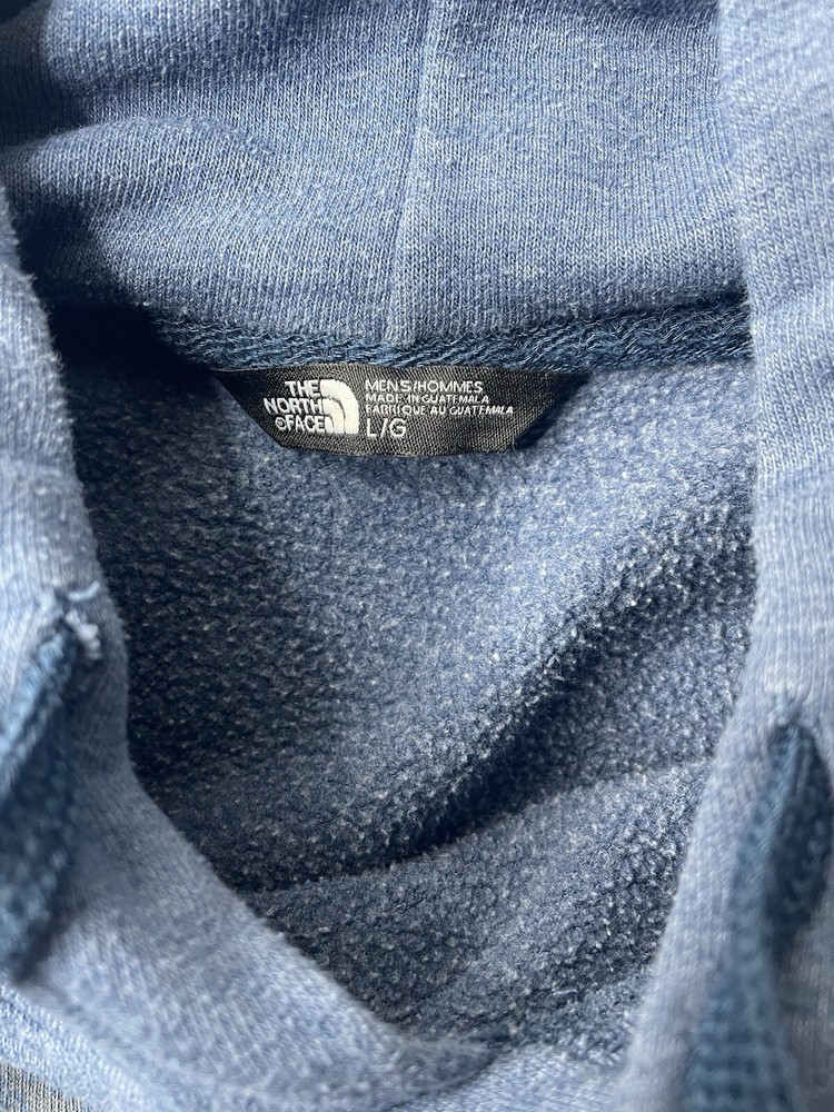 Color: Blue Sleeve Length: Long Sleeve Pattern: Graphic Print Material: Cotton, Polyester Accents: Logo Type: Hoodie Fit: Regular Department: Men Performance/Activity: Gym & Training, Hiking, Walking Theme: Classic, Outdoor, Sports Features: Graphic Print, Hooded, Pockets Fabric Type: Fleece Size: L Brand: The North Face Size Type: Regular Style: Pullover