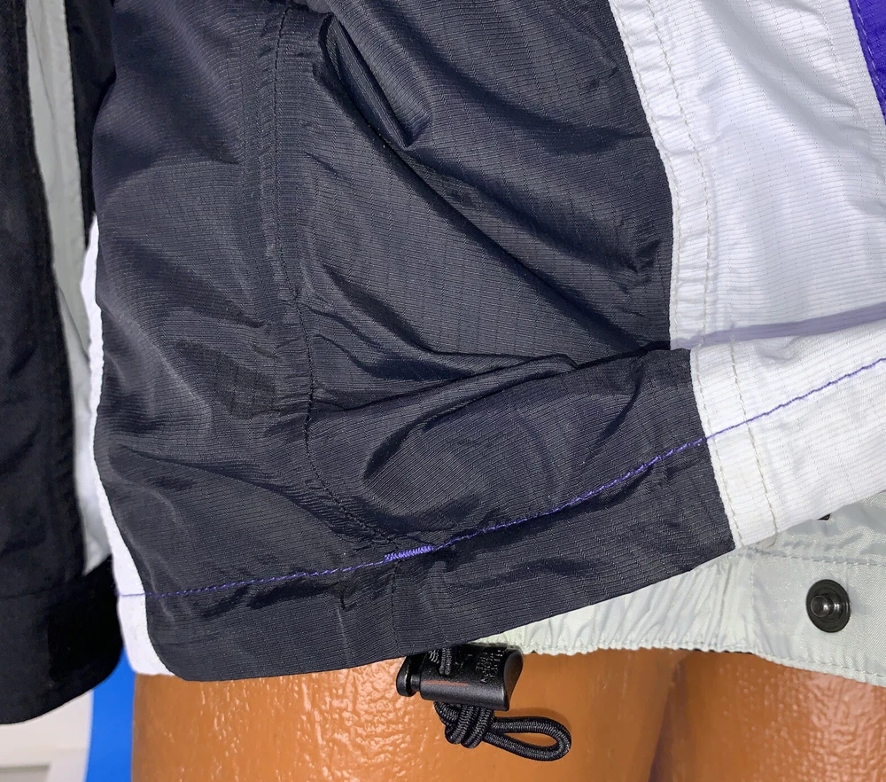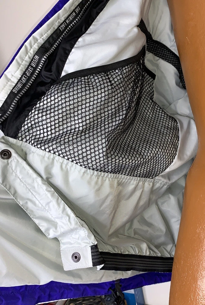 The North Face Jacket Medium Winter Ski Outer Shell Jacket Black Silver Purple Nice heavy outer shell, no inner (zippered) liner is included. (w.o liner, weighs over 2 lbs) The model and complimentary inner detachable liner info is unknown. Pre-owned. Shell only, the inner removable liner is not included. Nice condition, with working zippers, hook and loop, pulls. The zippered, detachable hood with hook and loop is included. See photos. The inner waist elastic, buttons and hook and loop all in great condition. The zippered, upper front chest is vented and good. The 2 outer zipper pockets are good.The 2 inner upper pockets are good.