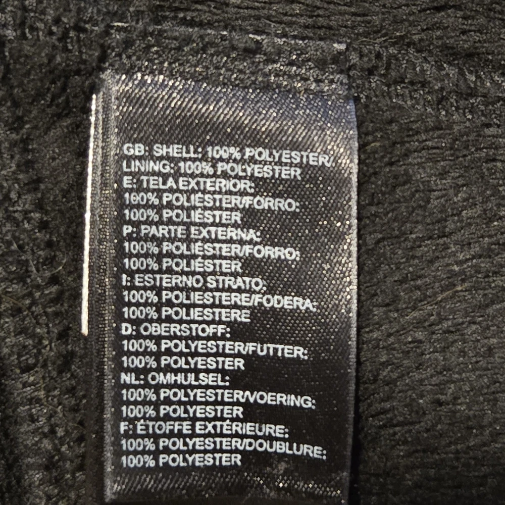 The North Face Men's Black Hybrid Fleece Line Jacket is a versatile piece that can be worn for travel, casual outings, or business purposes. It features a polyester outer shell and lining, with a polyester insulation material that provides warmth without bulk. The jacket has a windproof feature, making it suitable for outdoor activities such as walking, skiing, and hiking during the fall, winter, and spring seasons. This 28"mid-length jacket has a stand-up collar style and a zipper closure. It also has embroidered accents and the North Face logo on the left chest. The jacket is machine washable and comes in a size large with a chest size of 48 inches. Its solid black color and outdoor style make it a great addition to any wardrobe. Made in Vietnam. Excellent like new condition. *Quick Shipping *Accepting Reasonable Offers