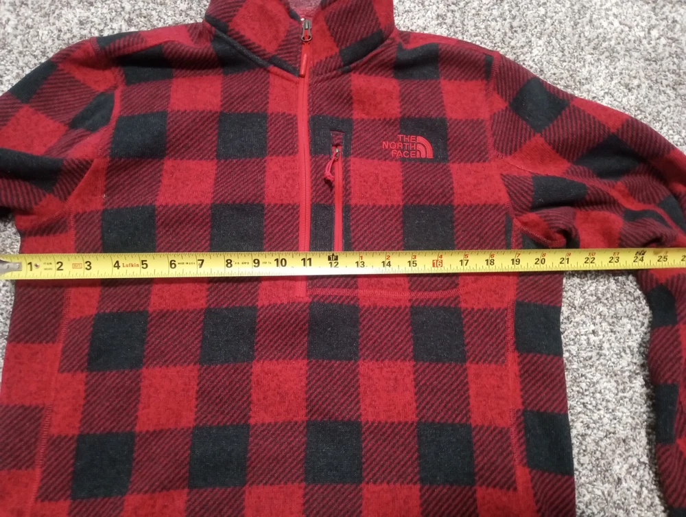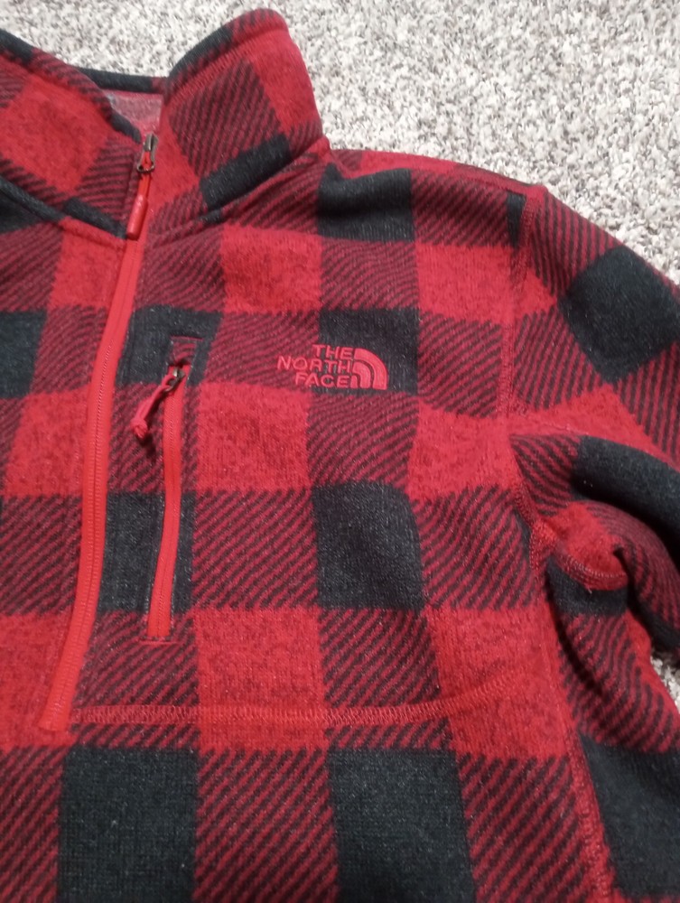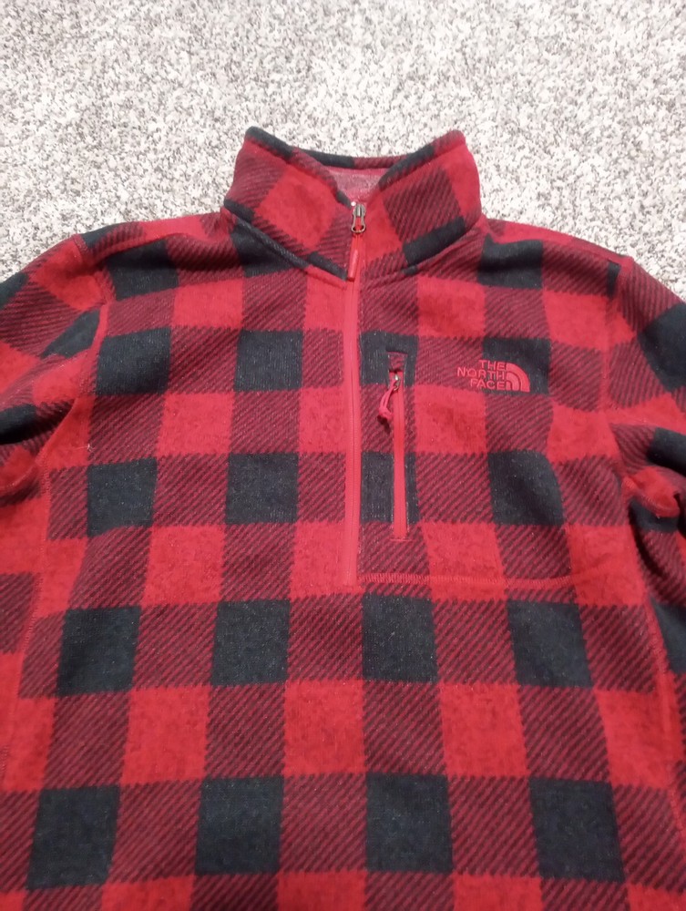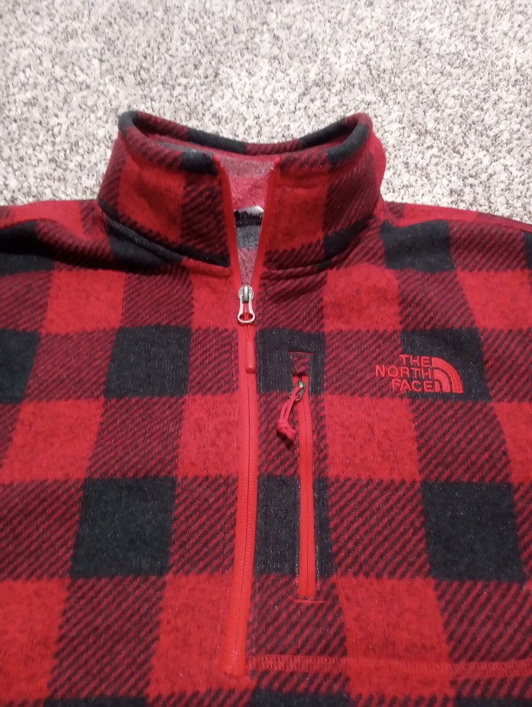 North Face 1/4 Zip Buffalo Plaid Pullover Red/Black Mens M. No visible flaws.