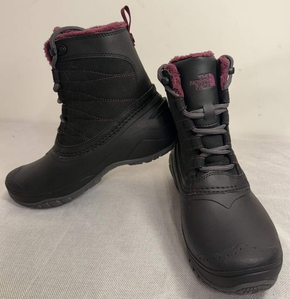 The North Face Women's Stormkat Cold-Weather Boots Black Size 6 The North Face Women's Stormkat Cold-Weather Boots Authentic Guaranteed Round-toe lace-up cold-weather boots Waterproof; Heatseeker insulation and fleece lining for added warmth and comfort TNF IcePick temperature-sensitive lugs for increased traction 2" heel Shaft: 6", 12" circumference Suede/manmade upper; polyester fleece lining; rubber sole Imported X) for inventory purposes only