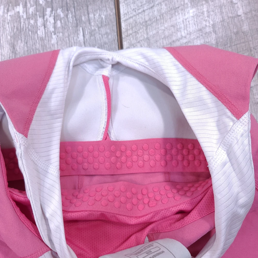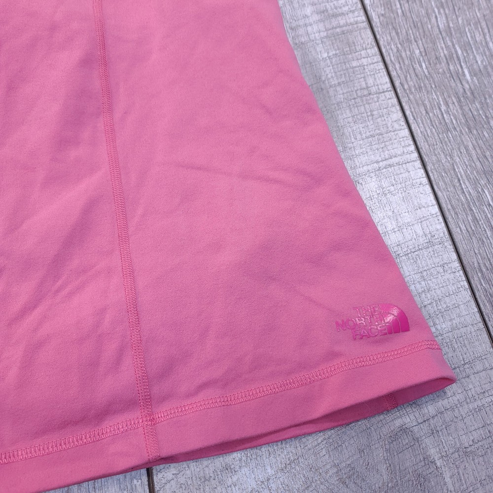 1. Love this North Face tank! The built-in bra is super comfy, and the fabric is lightweight yet supportive—perfect for hikes or workouts. The pink color is vibrant, and it's in amazing pre-owned condition—no flaws at all. Fits true to size (pit-to-pit 15", length 22"), and shipping was fast. Great deal for the quality! Highly recommend.