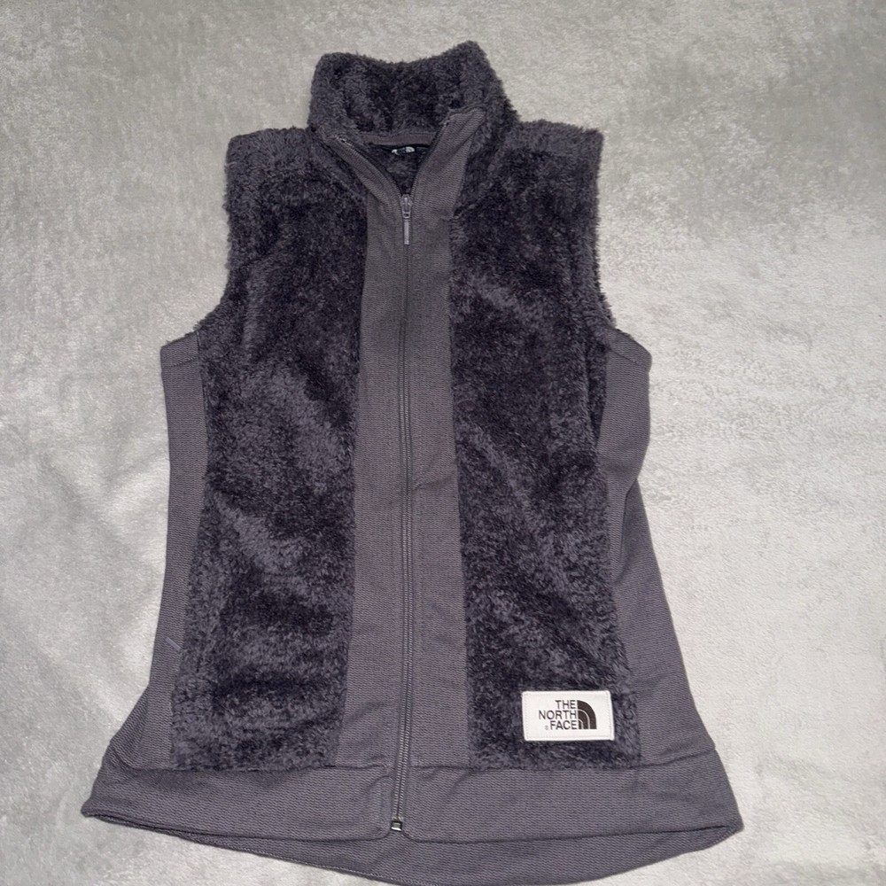 North Face Women's XS Gray Faux Fur Full-Zip Vest