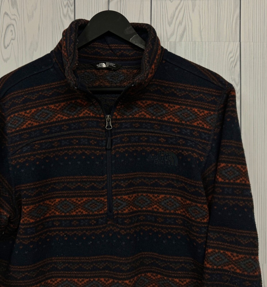 This North Face quarter-zip fleece is amazing! The Aztec print looks sharp, and the blue color pops just right. It's super cozy, fits perfectly (true to size), and arrived super fast with tracking. Super happy with the purchase—great quality and style!
