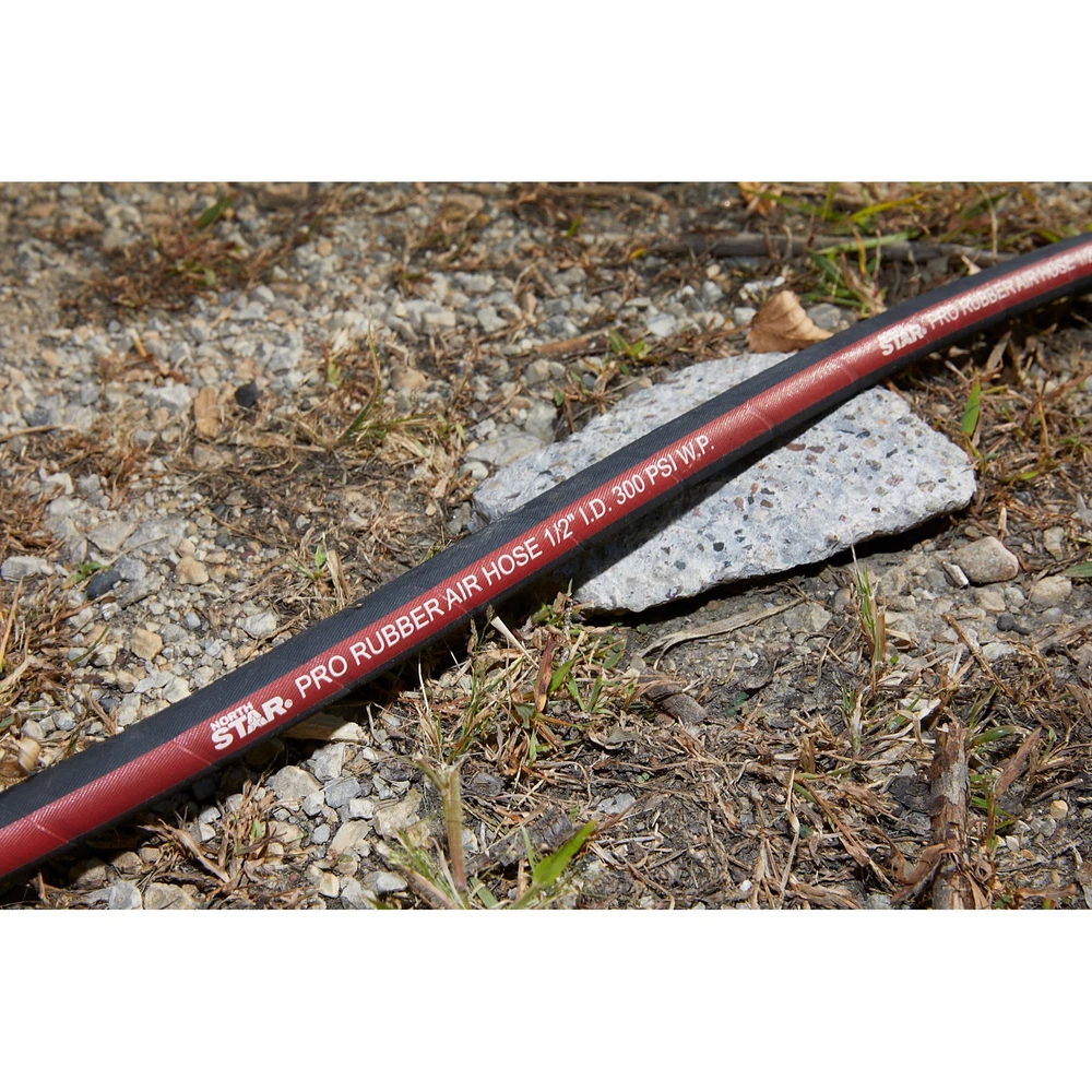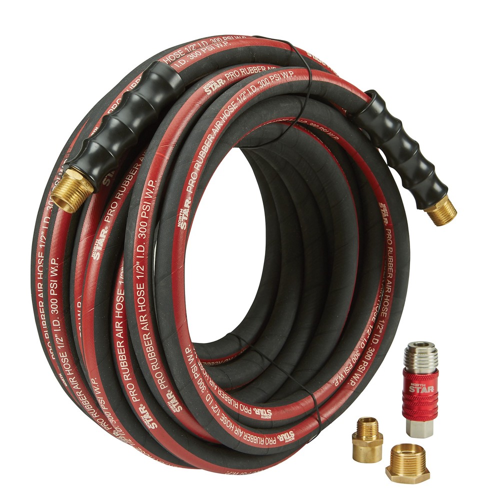 The NorthStar 1/2in. x 50ft. Pro-Grade Wrapped Rubber Air Hose with 5-in-1 Coupler is built for reliable high-pressure air delivery in demanding shop and jobsite environments. A 100% rubber construction with polyester-braided reinforcement delivers flexibility, durability and kink resistance, while solid brass fittings help resist corrosion for long service life. Designed with a versatile 5-in-1 coupler system for flexible connection options, the NorthStar 1/2in. x 50ft. Pro-Grade Wrapped Rubber Air Hose provides dependable performance across a wide range of pneumatic applications. NorthStar 1/2in. x 50ft. Pro-Grade Wrapped Rubber Air Hose with 5-in-1 Coupler, 300 PSI Northern Tool Item# 6105356 Item Weight: 9.6000 lb(s) Manufacturer: MPN: Warranty: . Product Summary: The NorthStar 1/2in. x 50ft. Pro-Grade Wrapped Rubber Air Hose with 5-in-1 Coupler is built for reliable high-pressure air delivery in demanding shop and jobsite environments. A 100% rubber construction with polyester-braided reinforcement delivers flexibility, durability and kink resistance, while solid brass fittings help resist corrosion for long service life. Designed with a versatile 5-in-1 coupler system for flexible connection options, the NorthStar 1/2in. x 50ft. Pro-Grade Wrapped Rubber Air Hose provides dependable performance across a wide range of pneumatic applications. Payment Instructions You can pay us securely through eBay. All orders will contain an invoice/receipt. IMPORTANT: We will not honor requests to remove invoices or receipts from packages. No exceptions ON U.S. PURCHASES, Northern currently collects sales tax on purchases shipped to all states except: Alaska, Delaware, Montana, New Hampshire, Oregon Shipping Information This product will be shipped by Parcel. Parcel Shipping: Ground shipped items must be sent to a physical address and cannot be sent to a PO box. If a PO box address is submitted without a physical address, it may delay your order. We cannot ship to APO/FPO boxes. Please note that we do not ship items on weekends or holidays. More information on shipping and handling times can be found on our Store Policies Page . Customer Care We want you to be satisfied with your purchase; please notify us by email if you have any concerns. Before you send an email message, please check our Help Section . We may already have an answer to your question! We are available to answer your email questions Monday through Friday from 8am - 3pm CST, excluding holidays. If your email is sent on a weekend, holiday or after business hours, we will respond to you on the following business day. Returns may be accepted on most items within 30 days of receipt of the item. All returns require authorization from us. Some returns are charged a 15% restocking fee. Please click the Shipping and Payments tab on this item for specific return information and full details. About Our Products Product Warranty: Warranty information and contact details can be found on our Store Policies Page. We are working hard to ensure that the information provided on the eBay product advertisements is accurate and up-to-date. We reserve the right to correct ad errors and/or omissions. Pricing and availability is subject to change without notice. This prodcut can expost you to chemcials including lead, which is known to the State of California for causing cancer and birth defects and other reproductive harm. For more information go to, www.prop65warnings.ca.com Returns + Shipping FAQ Sales Tax Info Newsletter Sign-Up Pressure Washers Generators Auto Repair Air Tools Fuel ALL NorthStar 1/2in. x 50ft. Pro-Grade Wrapped Rubber Air Hose with 5-in-1 Coupler, 300 PSI Northern Tool Item# 6105356 Item Weight: 9.6000 lb(s) Manufacturer: MPN: Warranty: . Product Summary: The NorthStar 1/2in. x 50ft. Pro-Grade Wrapped Rubber Air Hose with 5-in-1 Coupler is built for reliable high-pressure air delivery in demanding shop and jobsite environments. A 100% rubber construction with polyester-braided reinforcement delivers flexibility, durability and kink resistance, while solid brass fittings help resist corrosion for long service life. Designed with a versatile 5-in-1 coupler system for flexible connection options, the NorthStar 1/2in. x 50ft. Pro-Grade Wrapped Rubber Air Hose provides dependable performance across a wide range of pneumatic applications. Payment Instructions You can pay us securely through eBay. All orders will contain an invoice/receipt. IMPORTANT: We will not honor requests to remove invoices or receipts from packages. No exceptions ON U.S. PURCHASES, Northern currently collects sales tax on purchases shipped to all states except: Alaska, Delaware, Montana, New Hampshire, Oregon Shipping Information This product will be shipped by Parcel. Parcel Shipping: Ground shipped items must be sent to a physical address and cannot be sent to a PO box. If a PO box address is submitted without a physical address, it may delay your order. We cannot ship to APO/FPO boxes. Please note that we do not ship items on weekends or holidays. More information on shipping and handling times can be found on our Store Policies Page . Customer Care We want you to be satisfied with your purchase; please notify us by email if you have any concerns. Before you send an email message, please check our Help Section . We may already have an answer to your question! We are available to answer your email questions Monday through Friday from 8 - 3 CST, excluding holidays. If your email is sent on a weekend, holiday or after business hours, we will respond to you on the following business day. Returns may be accepted on most items within 30 days of receipt of the item. All returns require authorization from us. Some returns are charged a 15% restocking fee. Please click the Shipping and Payments tab on this item for specific return information and full details. About Our Products Product Warranty: Warranty information and contact details can be found on our Store Policies P