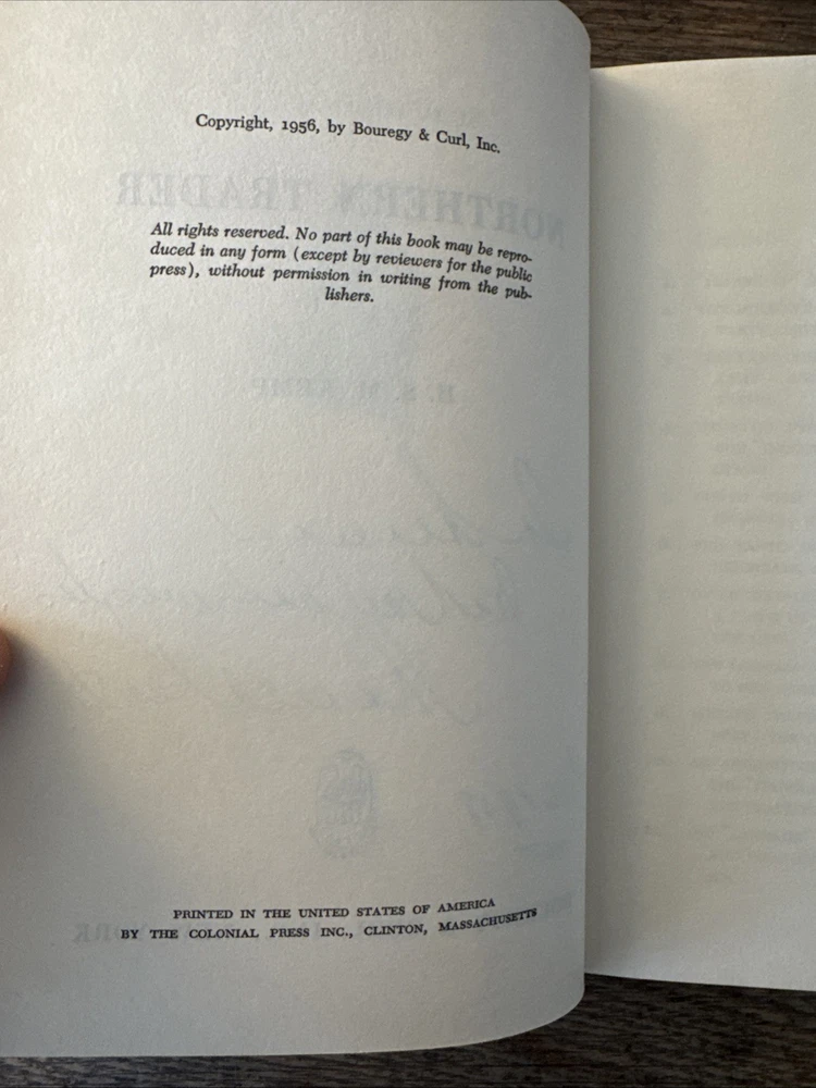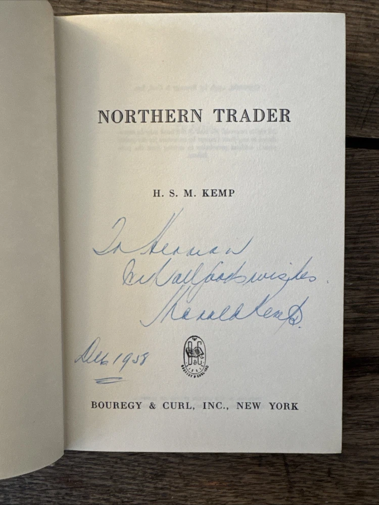 Northern Trader - H.S.M. Kemp SIGNED 1st Edition Hardcover with Dust Jacket 1956 Bouregy & Curl Inc. Biography by the Hudson’s Bay Company last ‘boots on the ground’ trader with native tribes Dust jacket is very good, minor wear (see pics) In plastic protector