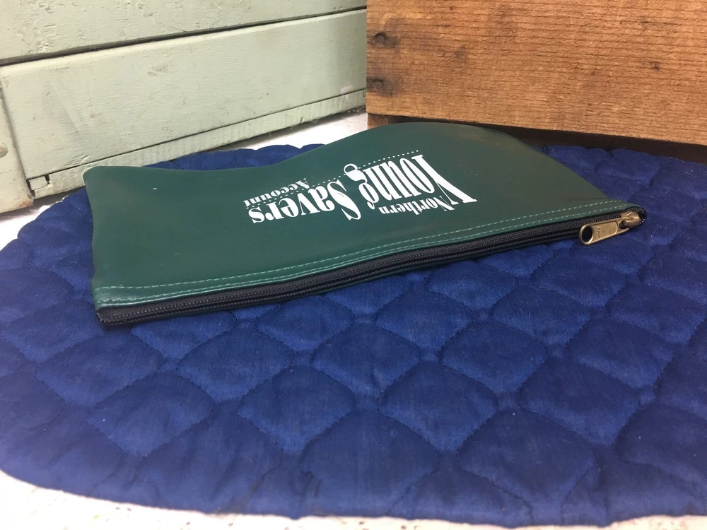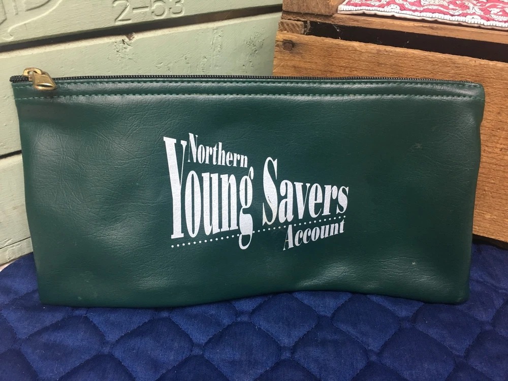 Northern Young Savers Account Money Bank Green Stash Bag Zipper in good, used condition. Some staining (can be seen on the white lettering). Opens and closes nicely. Please see all pictures. one side has the writing, the back side is plain green. ****************************** ****************************** ****************************** ****************************** **************** FINE PRINT – TERMS OF SALE: Please ask all questions and review photos before purchasing to ensure full understanding of what you are purchasing!! We sell items ranging in condition. We apply text and pictures to describe each item as honestly and as thoroughly as possible while noting any known imperfections such as holes, stains, missing buttons, flaws, cracks, chips, manufacturer defects, previous repairs, etc. If you are purchasing clothing, we recommend you measure your current comparable item to compare our measurements on the listing description for your best fit as all manufacturer’s sizes range in inches. Keep in mind all monitors display photo colors differently and we will describe the color to the best of our ability. Items are kept in a smoke-free, pet-free environment but keep in mind items come from various sources and might have a faint odor. ****************************** ****************************** ****************************** ****************************** **************** RETURNS: We take great pride in describing our items as honestly and thoroughly as possible through both pictures and text format. Please notify us of intent for a return shipment and wait for our response prior to returning the item. Original shipping costs will not be credited and return shipping is the responsibility of the buyer. Returns for items with free shipping will be issued a refund minus the original shipping cost incurred by the seller (please contact us in advance for an exact quote). A 15% restocking fee will be deducted from all return refunds unless otherwise agreed to by seller. Returned items must be in the same box as shipped and item in the same condition as when you received (i.e., if new all the tags still attached, manufacturer seals intact, and factory sealed package not opened, etc. if applicable). ****************************** ****************************** ****************************** ****************************** **************** Check out our other items ! Be sure to add us to your favorites list ! Thanks for looking and have a wonderful day!