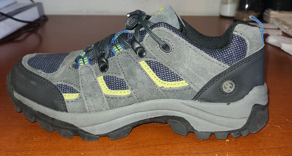 Get ready for some serious hiking with these Northside Women's Hiking Shoes! Made with a combination of suede leather and man-made materials, these sneakers are both comfortable and breathable, perfect for any adventure. The round toe and lace-up closure provide a secure fit, while the flat block heel offers moderate cushioning. These shoes are perfect for both casual wear and travel, and are suitable for Women with US shoe size 7 and UK shoe size 6. The gray and black color scheme with logo accents adds a touch of style, and the solid pattern is perfect for any occasion. So why wait? Get your hands on these Northside Youth Hiking Shoes and start exploring today!