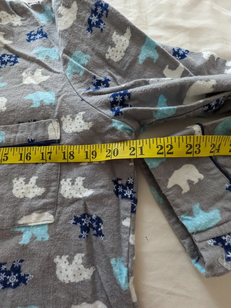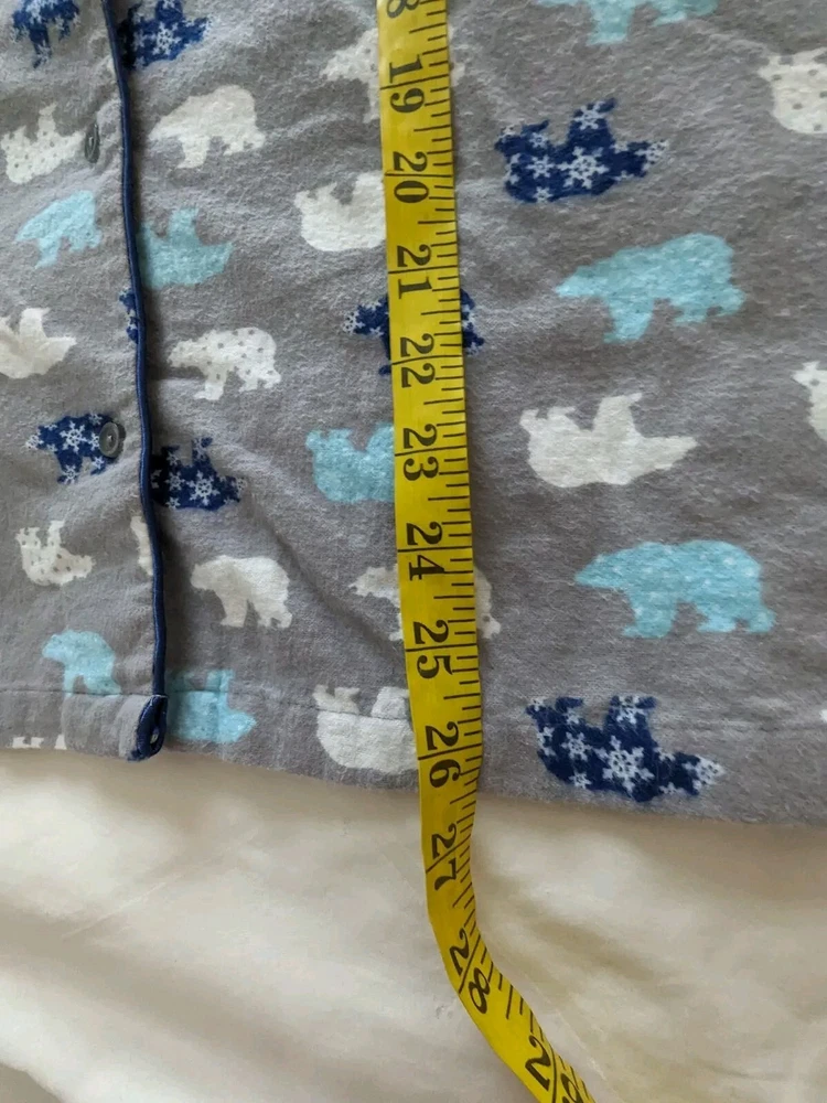 Get cozy in this Great Northwest Indigo Pajama Top. The grey top features a cute animal print with polar bears and is perfect for the winter and fall seasons. Made from 100% cotton flannel, this button-up top has a collared neckline and long sleeves for added warmth. Care for this top is easy as it is machine washable. Available in size L, this pajama top is perfect for women who love animals and want to stay cozy during the colder months.