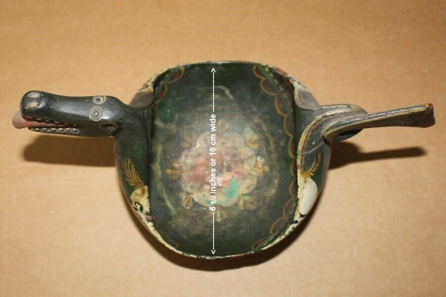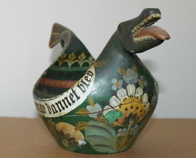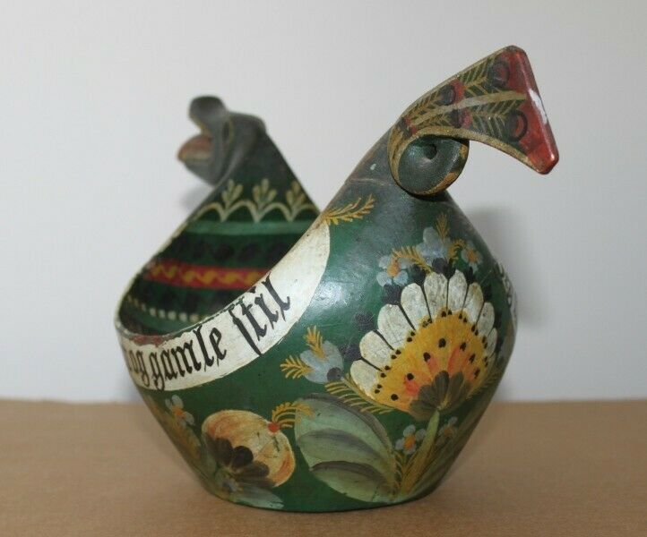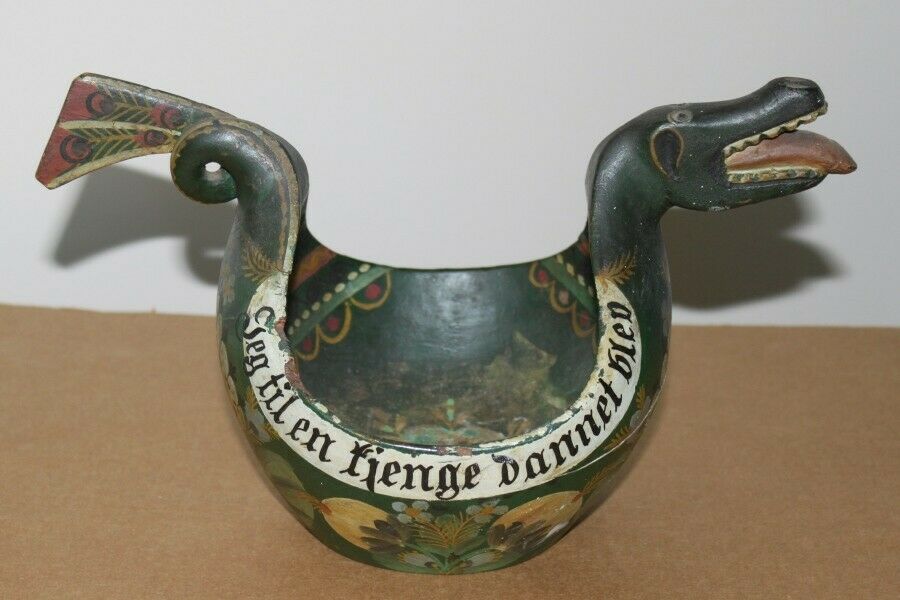 Antique Norwegian Os rosemaled dragon ale bowl. This is likely from 1890 to the early 1900's and is from the Bergen Hordaland area. There is a visible crack in the front that has been there for decades, (see photos) but otherwise in good condition. Shipped with USPS or FedX. US shipping only, no international.