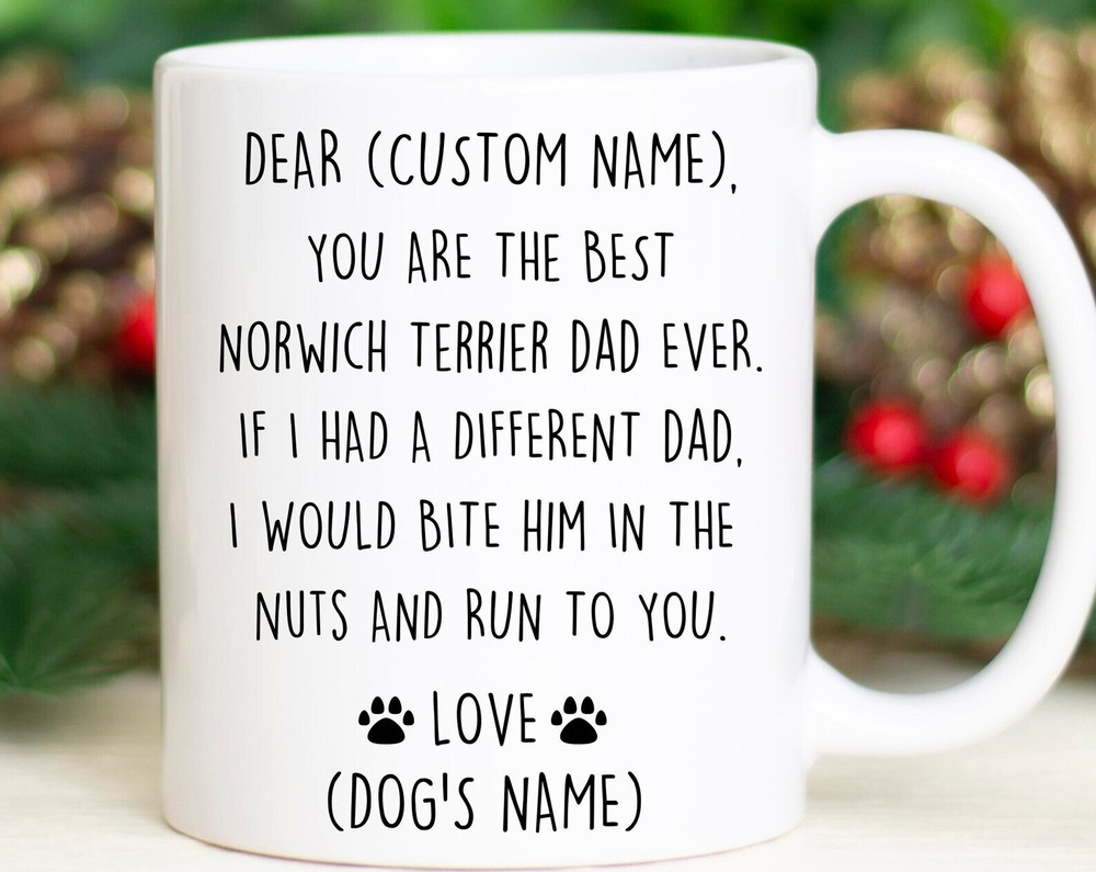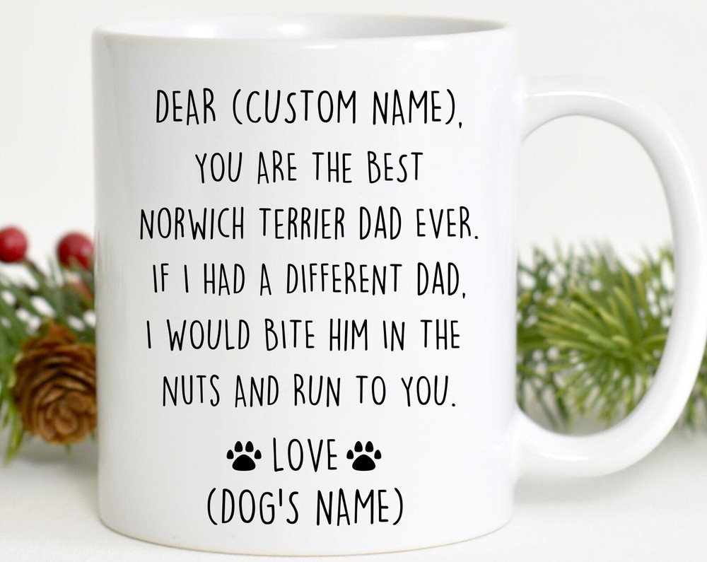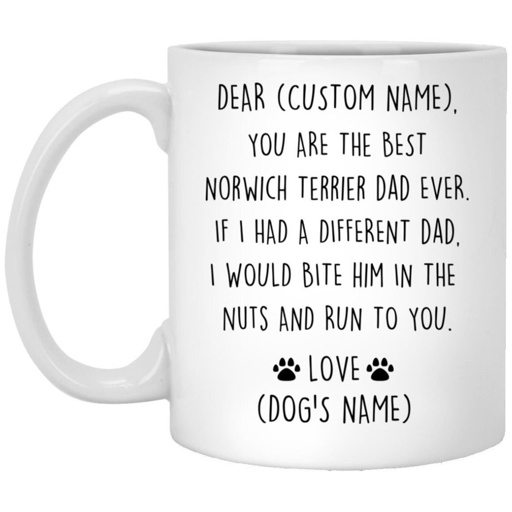 Norwich Terrier Dad Birthday Gift Norwich Dad Christmas Gift Norwich Dad Valentine Favorite Norwich Dad Mug Norwich Dad Appreciation Product Details.. This high quality 11oz. ceramic white mug has a premium hard coat that provides crisp and vibrant color reproduction sure to last for years. Perfect for all hot & cold beverages. The highest quality printing possible is used. It will never fade no matter how many times you wash it. Material: 100% Ceramic. Print both sides. Dishwasher and Microwave Safe. High Gloss + Premium White Finish. Printed in the U.S.A. Personalized & Custom. We support personalized and custom mug to add custom, when placing an order, you can add notes to the "order note" in shipping address section. Also you can contact us directly via message. Shipping Info. Ready to ship in 1 to 2 business days, All products are made-to-order and proudly printed in the United States. Shipped by USPS and DHL, You will receive your order in 5-7 days. Replace & Refund. All products are defective during shipping broken, chipped will be replaced free of charge. You are not satisfied with the product, we will refund 100% money to you. If any other issues arise, please do not hesitate to message, we would be more than happy to assist you.