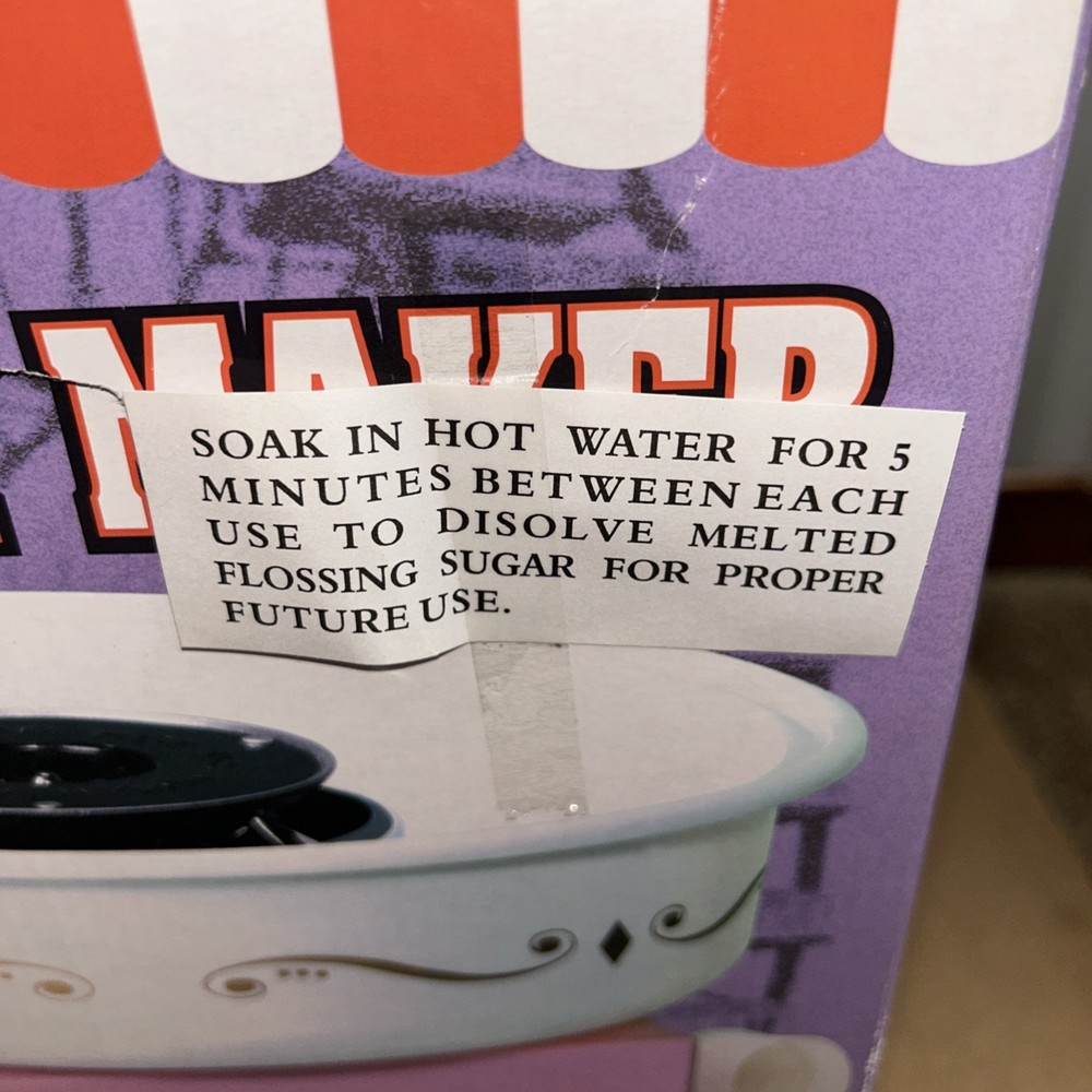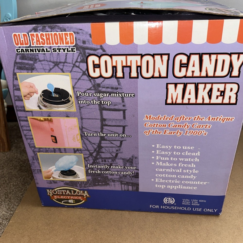 The Nostalgia CCM505 Cotton Candy Maker is a vintage-inspired carnival style appliance that brings back memories of nostalgic old-fashioned fun. With its retro design and model name (CCM-505), it exudes charm and whimsy, perfect for creating delicious cotton candy at home. The Nostalgia Electrics brand ensures high-quality and reliable performance, making this cotton candy maker a delightful addition to any kitchen or sweet treats enthusiast's collection. Comes with add on cotton candy maker kit that makes 24 delicious cotton candy cones.box opened but product appears to never have been removed from packaging.