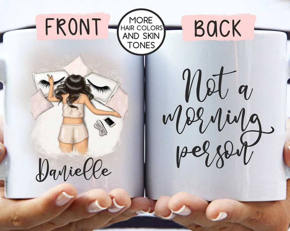 Not A Morning Person Custom Name Mug Girly Mugs Girly Gifts Personalized Product Details.. This high quality 11oz. ceramic white mug has a premium hard coat that provides crisp and vibrant color reproduction sure to last for years. Perfect for all hot & cold beverages. The highest quality printing possible is used. It will never fade no matter how many times you wash it. Material: 100% Ceramic. Print both sides. Dishwasher and Microwave Safe. High Gloss + Premium White Finish. Printed in the U.S.A. Personalized & Custom. We support personalized and custom mug to add custom, when placing an order, you can add notes to the "order note" in shipping address section. Also you can contact us directly via message. Shipping Info. Ready to ship in 1 to 2 business days, All products are made-to-order and proudly printed in the United States. Shipped by USPS and DHL, You will receive your order in 5-7 days. Replace & Refund. All products are defective during shipping broken, chipped will be replaced free of charge. You are not satisfied with the product, we will refund 100% money to you. If any other issues arise, please do not hesitate to message, we would be more than happy to assist you.