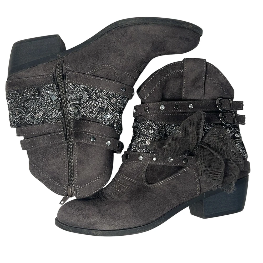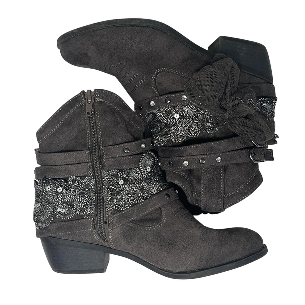 Not Rated Midas Gray Embellished Cowgirl Boots Women's Size 6
