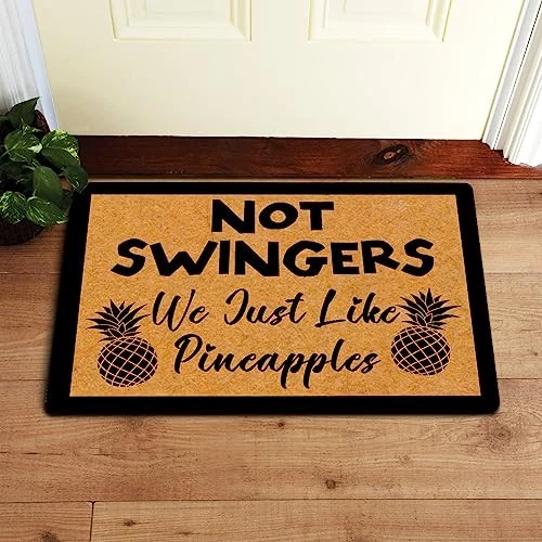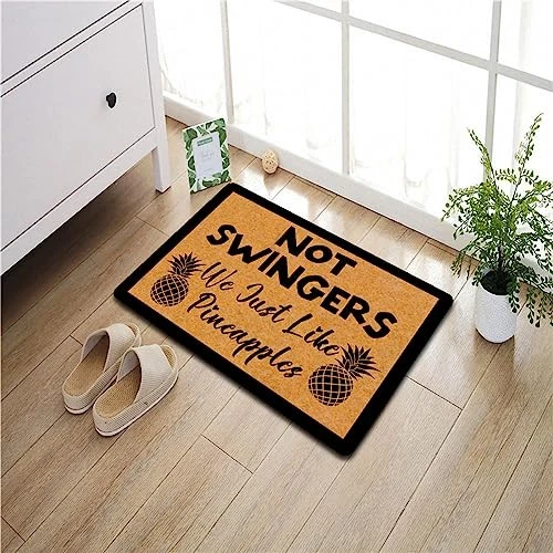 Menu 1. We require immediate payment. 2. We currently accept payment via eBay managed payments only. 3. Once payment is cleared, we will dispatch your shipment within 1-3 business days. Please refer to the "Shipping" tab for more information regarding shipping speed to your destination. Not Swingers We Just Like Pineapples Funny Doormat for Entrance Way with Non Slip Backing Indoor/Outdoor Welcome Mats Home and Office Decorative Rug 23.6 in(W) X 15.7 in(L) Product description Material&Size:The front is made of high-quality felt , and the back is made of high-quality Non-slip Rubber. About 23.6"(L) x 15.7"(W)0.11"(3mm) , thin thickness to fit most standard size doorways and entryways. Applicable scenarios:It can be used to Indoor and outdoor universal.Such as bathroom/kitchen/balcony/entrance/laundry/bedroom/office, etc. Soft Non-Slip & Safety:The front door mat made of durable non-slip rubber backing that secures, well to the floor to prevent accidental falls. Non slip doormat always protects the safety of you and family. Design&Easy to clean:Rich printed surfaces, personalized celebrity quotes or interesting logos and funny design will be great gift choice for occasion.It is weather-resistant and quick-drying, just shake the mat or wash, dirt will disappear.(Machine washable) Customer Service : If t is any problem. We will respond you under 24 hours .May you have a pleasant day! PLEASE MESSAGE US IF YOU HAVE ANY OTHER QUESTIONS, AND MANY THANKS FOR READING ALL OF THIS. Copyright ©#. All Rights Reserved.