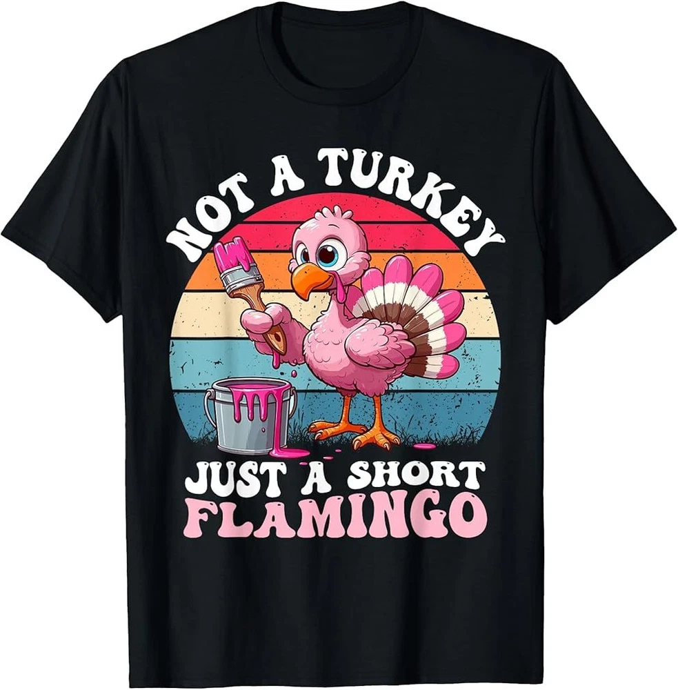 Not a Turkey Just a Short Flamingo Funny Thanksgiving Saying T-Shirt