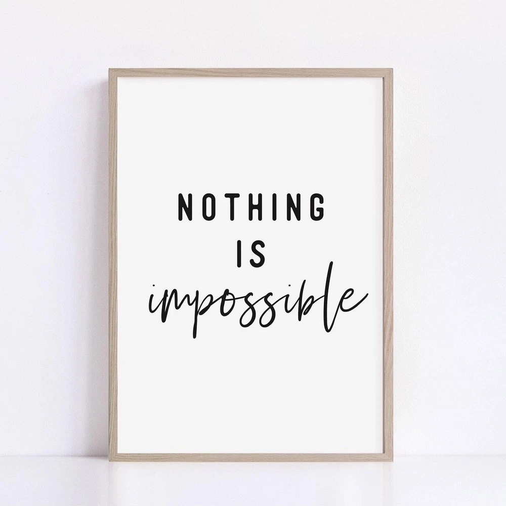 Nothing Is Impossible Quote Print Motivational Wall Art Positive Vibes Poster Printable Quotes Motivation Wall Decor Material: Premium luster photo paper Print type: Inkjet printing One side printed + The finish provides the highest possible resolution and color saturation + Lasts up to 200 years in color and 400 years in black-and-white + Printed on high-quality resin-coated photo base paper medium + Posters can be hung with double-sided tape, tacks, or framed + Hand washing with a gentle cry cloth is recommended for extended durability I will hand select the best choice of paper for your chosen design to ensure top quality results for a beautiful, bright and luxurious print. All prints are sealed in cellophane slips for protection during transportation, and are shipped in a protective cardboard envelope.