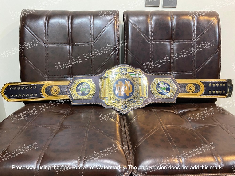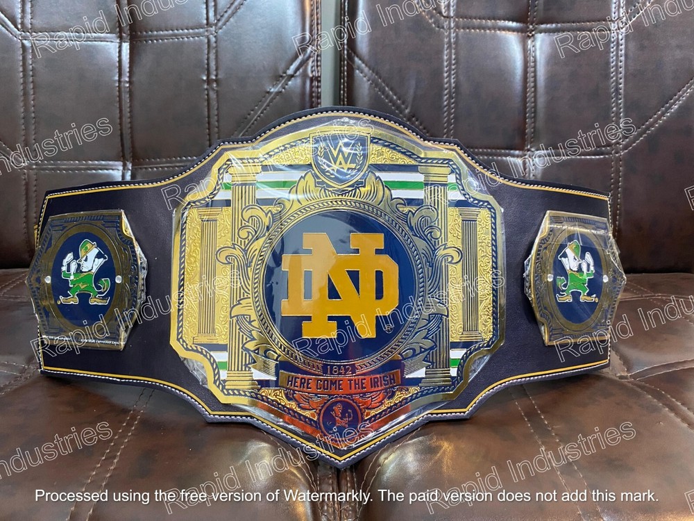 Notre Dame Fighting Irish Championship Legacy Title Belt Adult Size 2mm Brass 100% ORIGINAL LEAT HER STRAP PLATE MATERIAL BRASS PLATE THICK 2mm Strap Is Made With Top Quality. Strap Color You Can Change On Demand. Adult size Full length belt almost 50inch Fits upto 50 inch waist We manufacture all types of wrestling and boxing belts in good and standard quality, apart from this we also manufactue customized belts. You can trust us and place orders without any worries, We do not compromise on our quality. We use good quality leather on our belts and we strive to create a belt that meets the customer's expecations. If you buy more then 1 item, you will also be given a discount. Shipping: We will ship your belt within 7 working days after receiving full payment. We shipped through DHL or FedEx. FeedBack: If you have any problem related to the product, please contact us before giving negative feedback. Your feedback is very important to us and to new customers, so be sure to share your opinion.