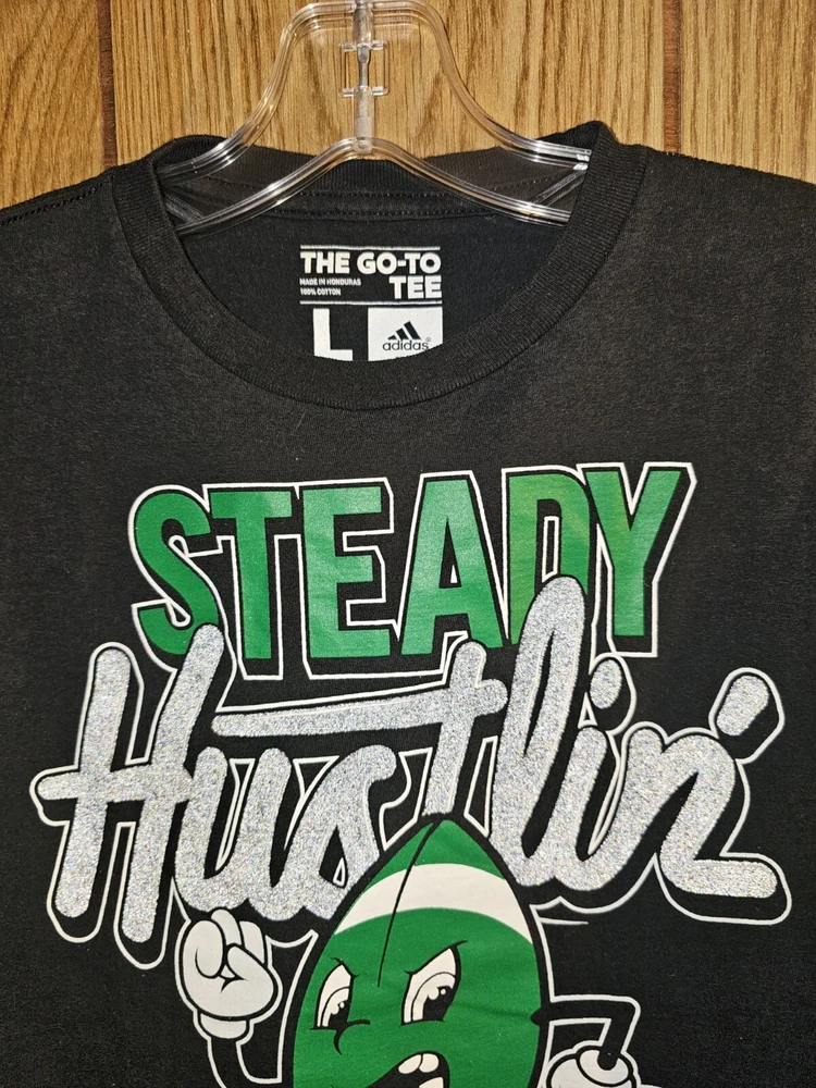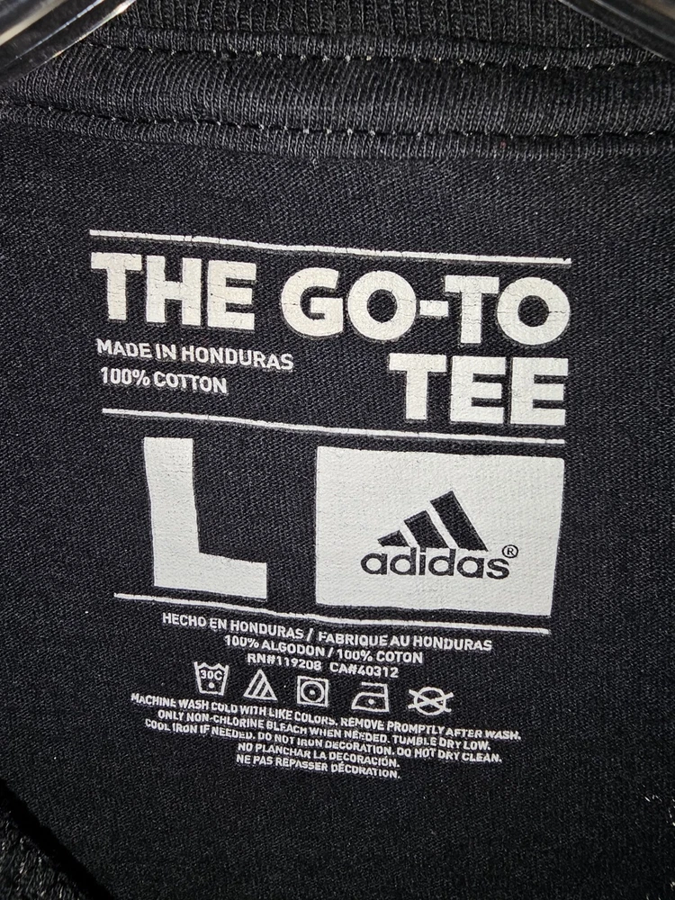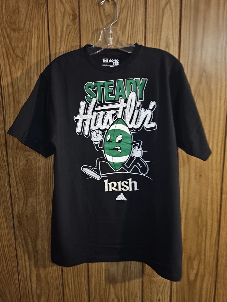 Show your support for the Notre Dame Fighting Irish with this stylish black graphic logo t-shirt. Made by adidas, this shirt is perfect for regular season football games and is officially licensed by the NCAA. The shirt is available in size L and is designed for men. The shirt is made in Honduras and features the iconic Notre Dame logo on the front. Whether you're a student or an alumnus, this t-shirt is a great way to show your pride for the Fighting Irish. It's perfect for casual wear or game day, and the high-quality design ensures it will last for years to come. Get yours today and show your love for ND!