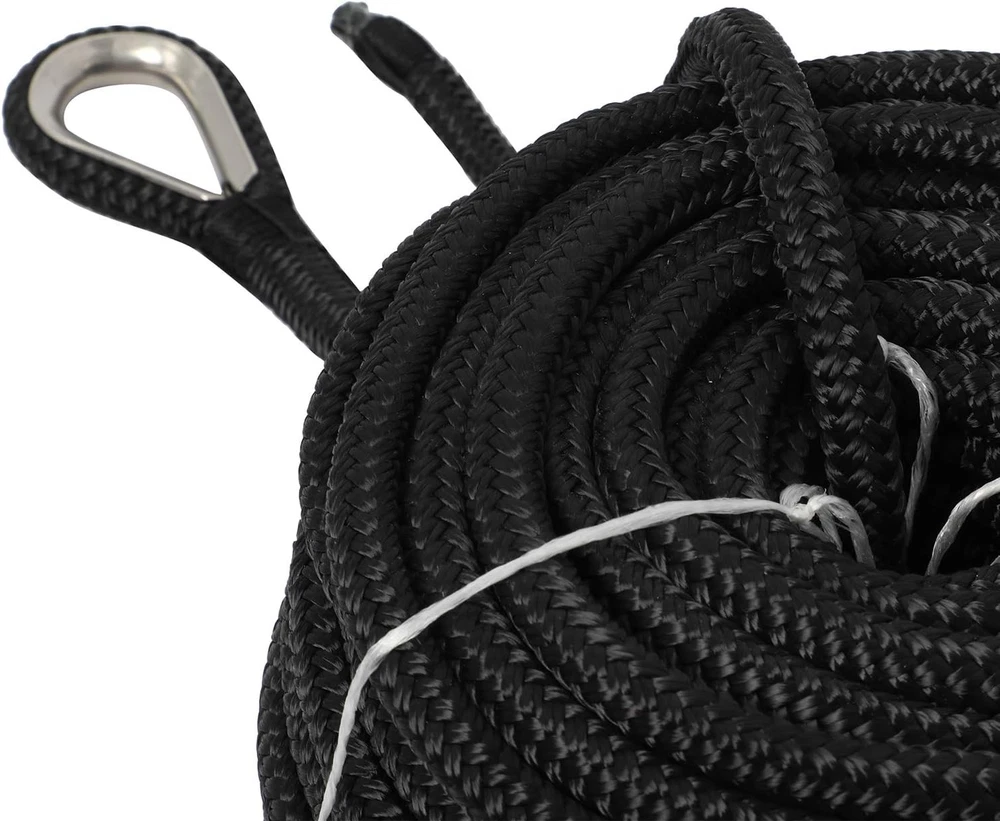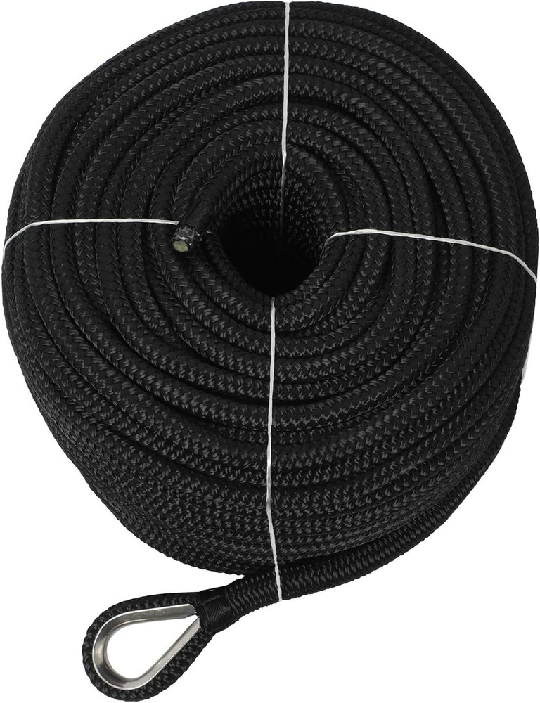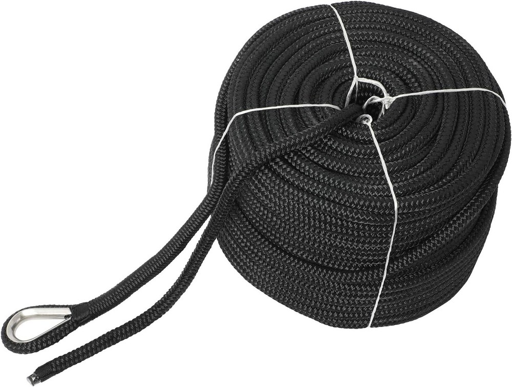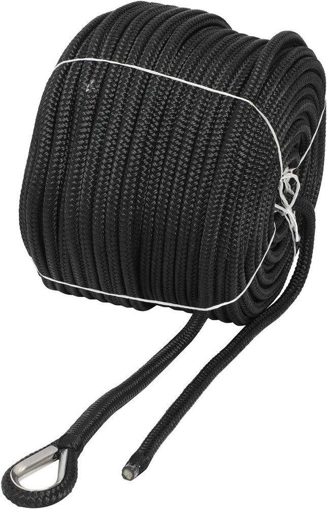 NovelBee 1/2" x 300' Double Braid Nylon Anchor Line with Stainless Black Product Details Material: Nylon Color: Black Brand: NovelBee Vehicle Service Type: Watercraft Fastener Material: Stainless Steel Number of Pieces: 1 Product Dimensions: 3600"L x 0.5"W Manufacturer: Shanghai yuewen gaoyuan trading co.,LTD Unit Count: 300 Feet Item Weight: 20.1 pounds Country of Origin: China Material: Nylon Color: Black Brand: NovelBee Vehicle Service Type: Watercraft Fastener Material: Stainless Steel Rope Dia.:1/2";Length:300';Color:Black or White Anchor rope material:Nylon;Construction:Braid on Braid Boat rope safe Workload:1,020 Lbs;Tensile strength:5,100 Lbs Anchor Line with Stainless Steel Thimble and heat sealed bitter end Each anchor line includes a spliced stainless steel eye thimble for easy attachment to your anchor,swivel,chain and so on