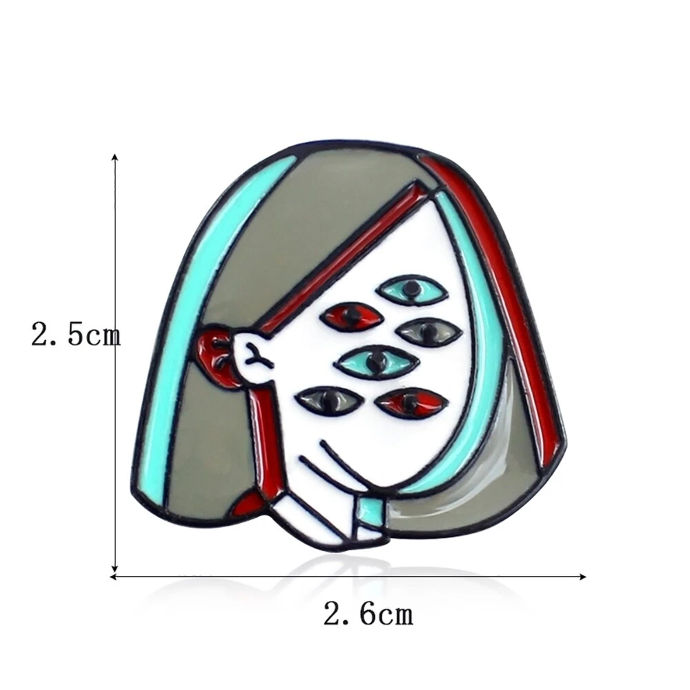 Specifications:\n Unique girl design with multi eyes.\n Glossy enamel technology, unique and stylish.\n Well-matching jewelry decoration for daily life.\n\n Type: Brooch Pin\n Gender: Womens\n Theme: Beauty\n Quantity: 1Pc\n Material: Alloy, Enamel\n Occasions: Daily Life, Shopping, Travel, School, etc\n Fit for: Sweater, Scarf, Bag, Dress, Collar, Shirt, Suits, etc\n Features: Girl Design, Enamel, Jewelry Decor, Multi Eyes\n Size: 2.5cm x 2.6cm/0.98"" x 1.02"" (Approx.)\n\n Notes:\n Due to the light and screen setting difference, the items color may be slightly different from the pictures.\n Please allow slight dimension difference due to different manual measurement.\n\n Package Includes:\n 1 Novelty Girl Multi Eyes Enamel Lapel Brooch Pin Badge Denim Bag Jewelry Decor Specifications: Unique girl design with multi eyes. Glossy enamel technology, unique and stylish. Well-matching jewelry decoration for daily life. Type: Brooch Pin Gender: Womens Theme: Beauty Quantity: 1Pc Material: Alloy, Enamel Occasions: Daily Life, Shopping, Travel, School, etc Fit for: Sweater, Scarf, Bag, Dress, Collar, Shirt, Suits, etc Features: Girl Design, Enamel, Jewelry Decor, Multi Eyes Size: 2.5cm x 2.6cm/0.98"" x 1.02"" (Approx.) Notes: Due to the light and screen setting difference, the items color may be slightly different from the pictures. Please allow slight dimension difference due to different manual measurement. Package Includes: 1 x Brooch Pin Product Attributes: Color : Colorful Material : Alloy, Enamel Weight (lbs.) : 0.02 lb Length (in.) : 0.98 Width (in.) : 0.98 Height (in.) : 0.55 UPC: 7642270628138 Brand: Generic